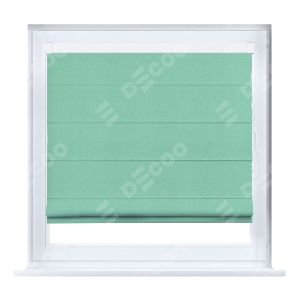 Римская штора производителя «Cortin», устанавливается на створку окна, пошита из ткани pipa блэкаут бирюза, артикул 81852. Штора шьётся по индивидуальным размерам, для данного типа римской шторы возможная ширина от 35 до 150 см., высота до 250 см.