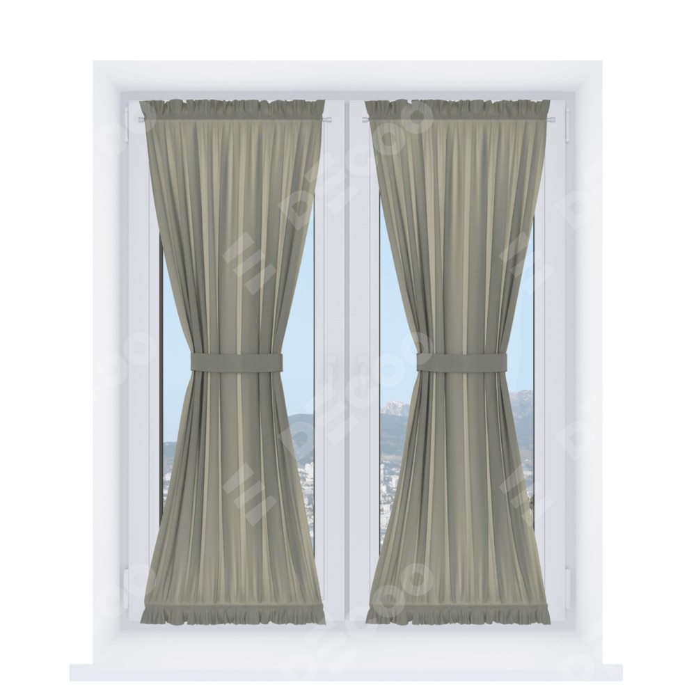 Штора «Песочные часы» производителя «Cortin», используется для створок окон и дверей, пошита из ткани блэкаут однотонный серо-зелёный, артикул ткани 29568.