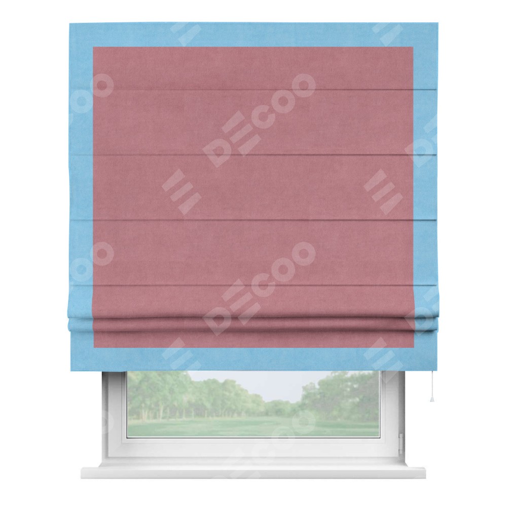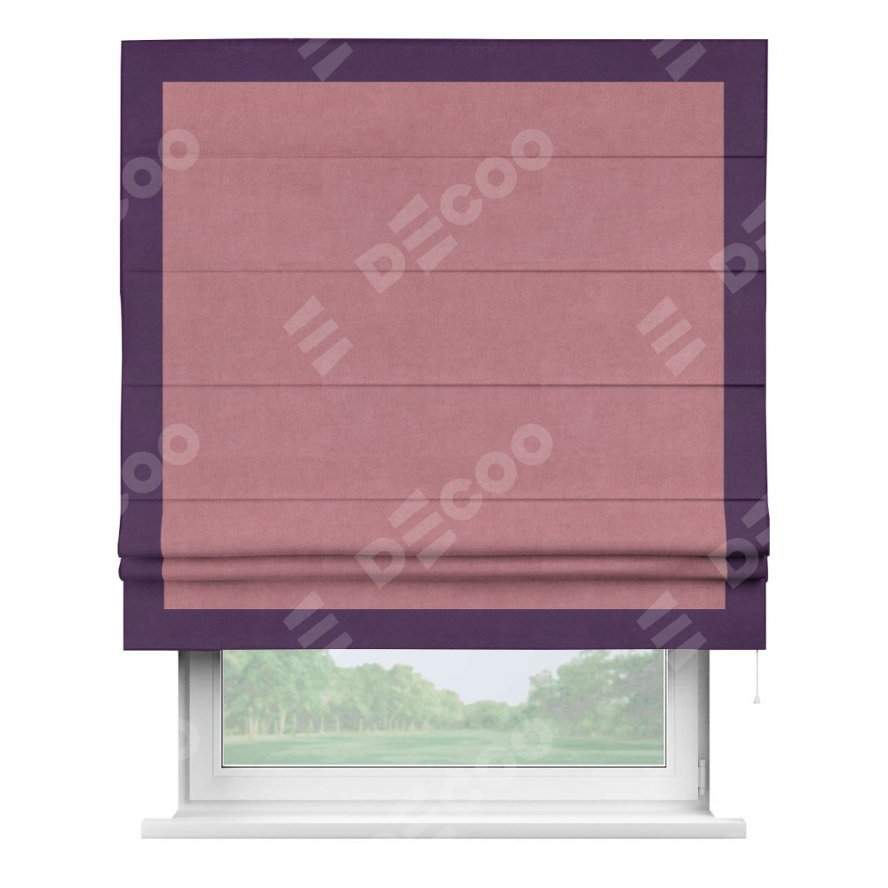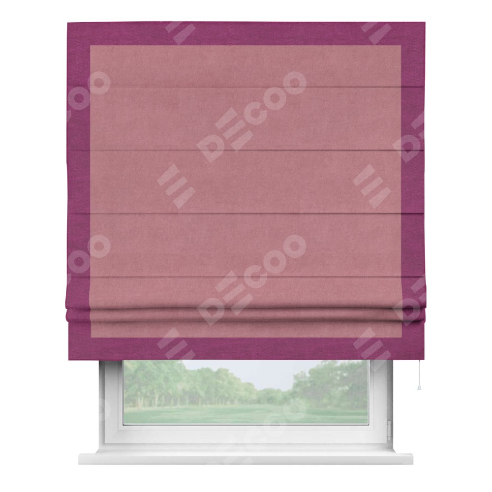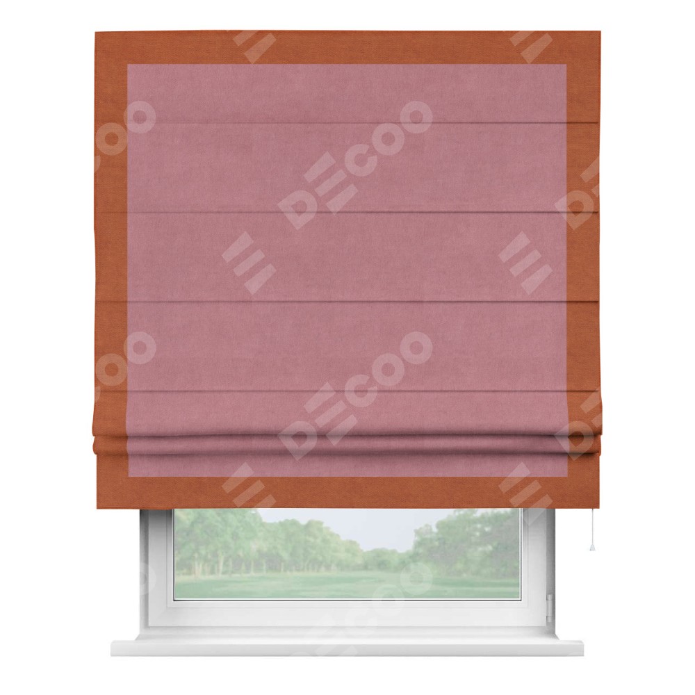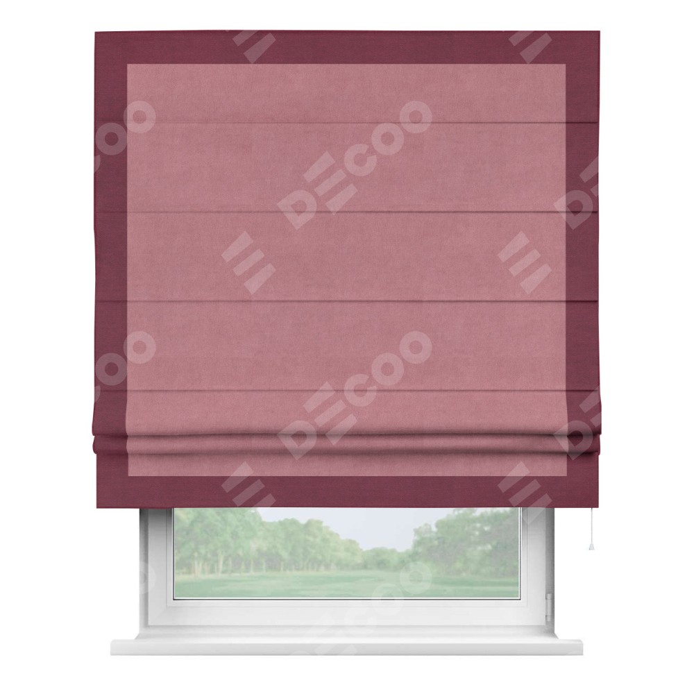 Римская штора «Кортин» с кантом Чесс, для проема, ткань вельвет брусника