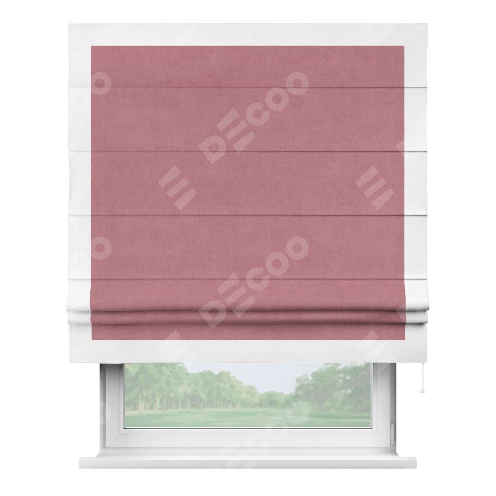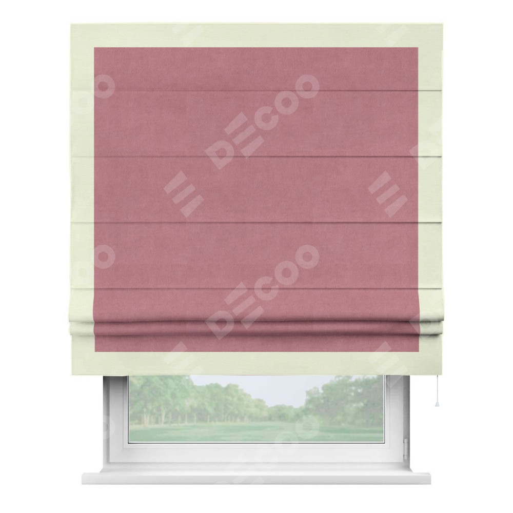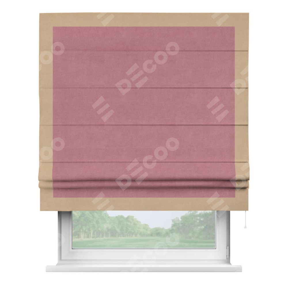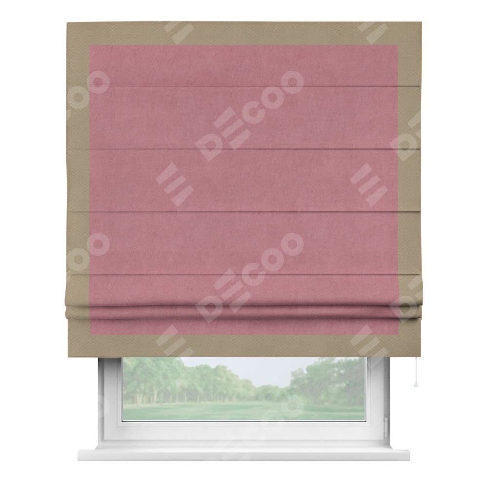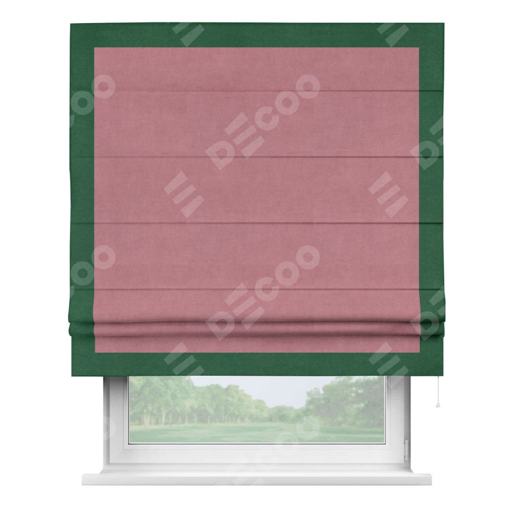 Римская штора «Кортин» с кантом Чесс, для проема, ткань вельвет брусника