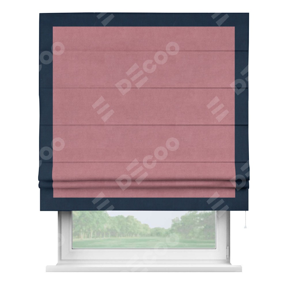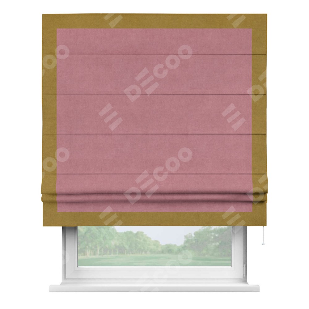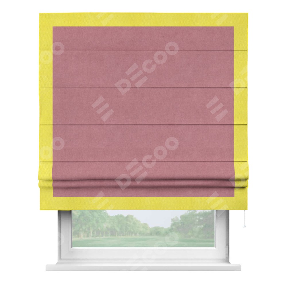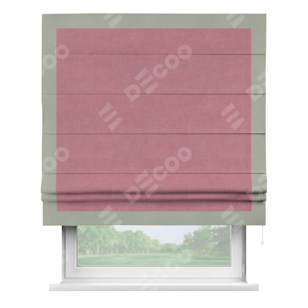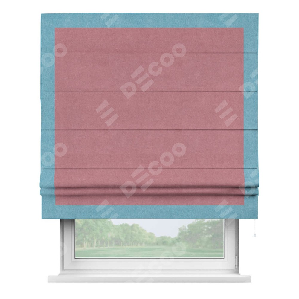 Римская штора «Кортин» с кантом Чесс, для проема, ткань вельвет брусника