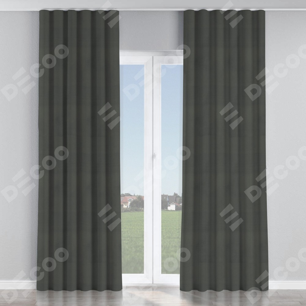 Комплект прямых штор, от производителя «Cortin», пошиты из ткани бархат серый, артикул ткани 5024. С изнаночной стороны в верхней части штор пристрачивается шторная лента с декоративными складками «Волна». Для создания элегантных складок прямые шторы шьются по стандарту с коэффициентом 1:2 (на 100 см. ширины проёма 200 см. ширины ткани).