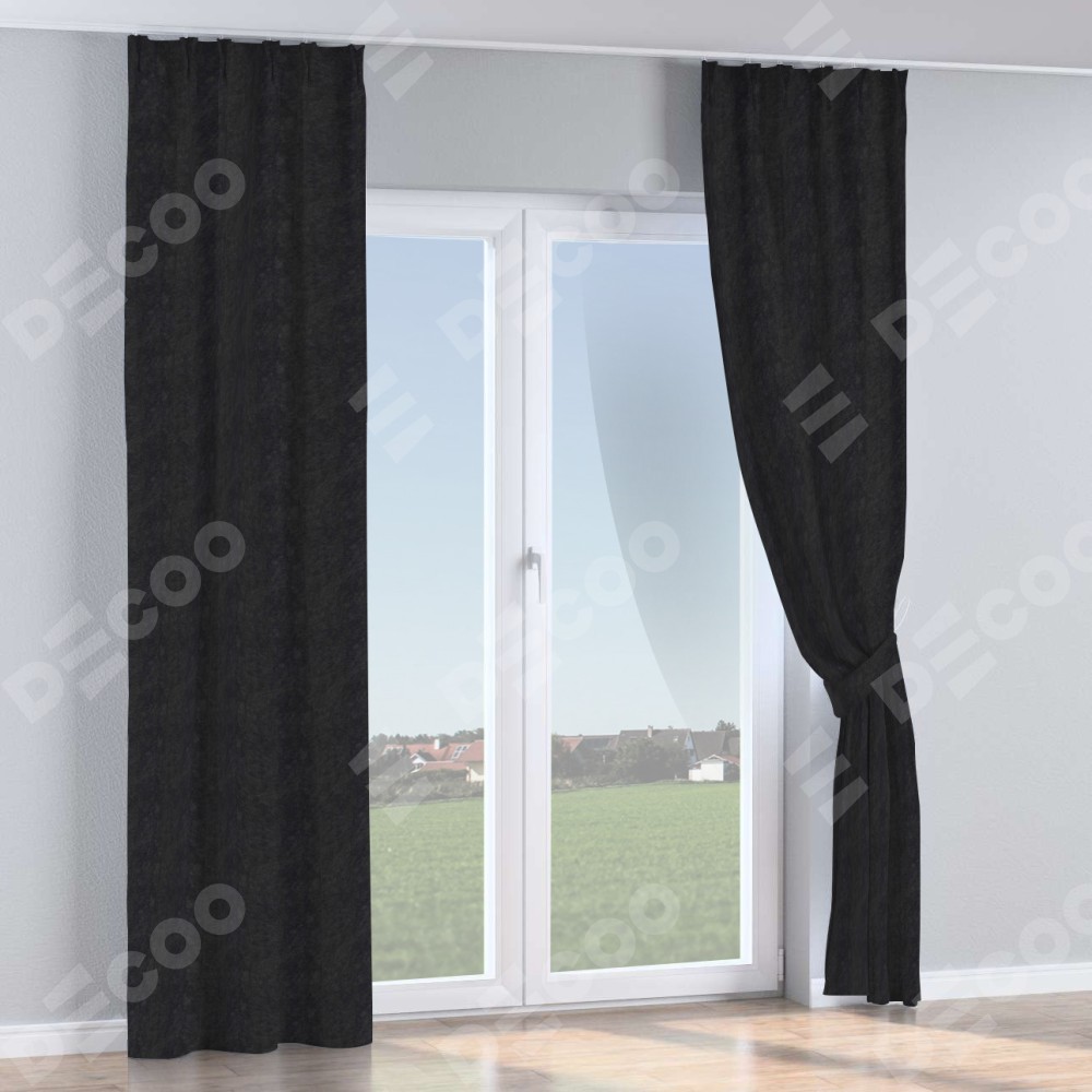 Комплект прямых штор, от производителя «Cortin», пошиты из ткани cotton блэкаут тёмно-серый, артикул ткани 35282. С изнаночной стороны в верхней части штор пристрачивается шторная лента с декоративными складками «Кустик». Для создания элегантных складок прямые шторы шьются по стандарту с коэффициентом 1:2 (на 100 см. ширины проёма 200 см. ширины ткани).