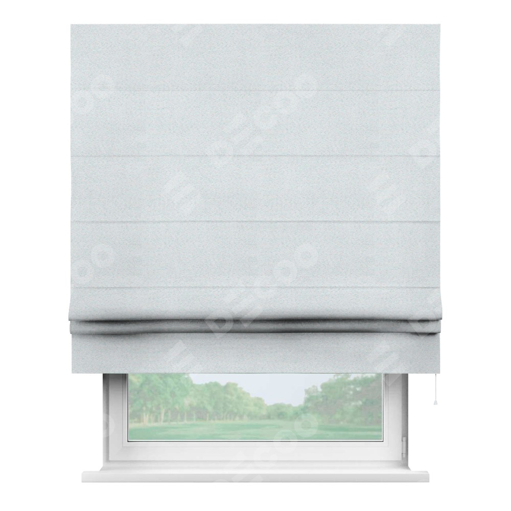 Римская штора производителя «Cortin», используется для проёма, пошита из ткани блэкаут однотонный дымчато-белый, артикул ткани 101. Имеет универсальный механизм и подходит для монтажа: на потолок, на стену и в нишу.