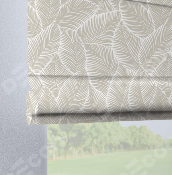Римская штора производителя «Cortin», используется для проёма, пошита из ткани блэкаут с нанесением сублимационной печати «Бежевые листья». Данная модель пошита на петлях, комплектуется на выбор круглым карнизом и подходит для монтажа на стену. Римская штора на петлях имеет простую систему регулировки высоты, отличительным преимуществом данной модели является простой способ монтажа. Достаточно повесить ее на трубу и штора готова!