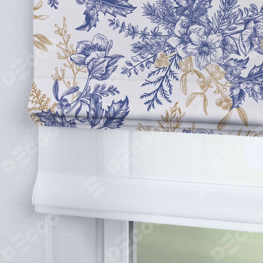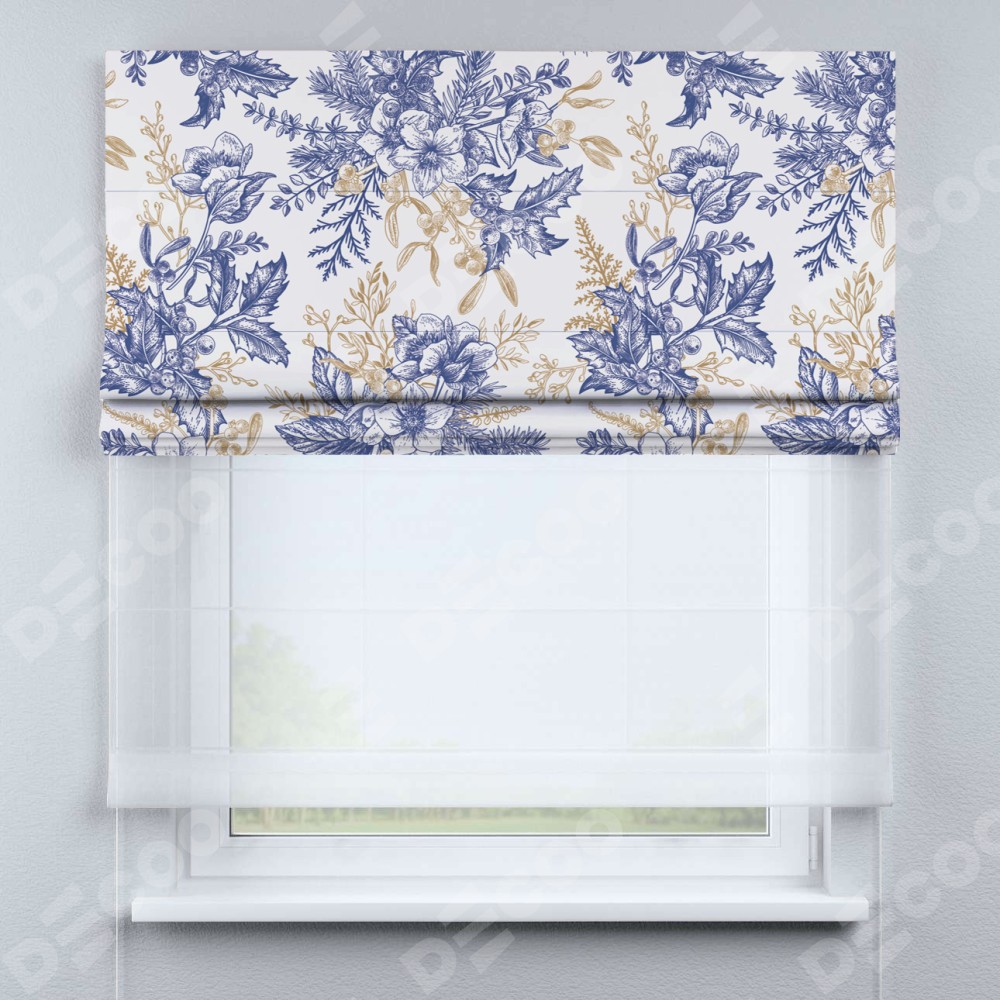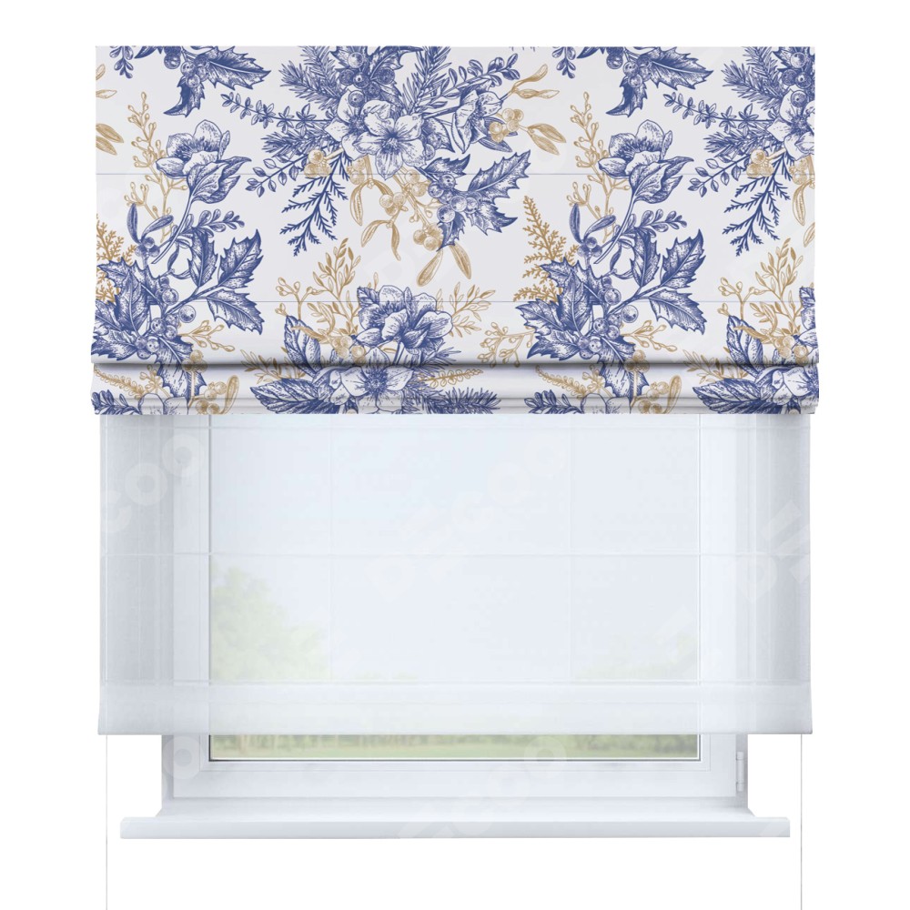 Римская штора день-ночь производителя «Cortin», используется для проёма, пошита из двух полотен, с лицевой блэкаут с нанесением сублимационной печати «Зимний сад», вторая ткань тюль (по стандарту комплектуется тюль белого цвета артикул V-01). Имеет универсальный механизм и подходит для монтажа: на потолок, на стену и в нишу.