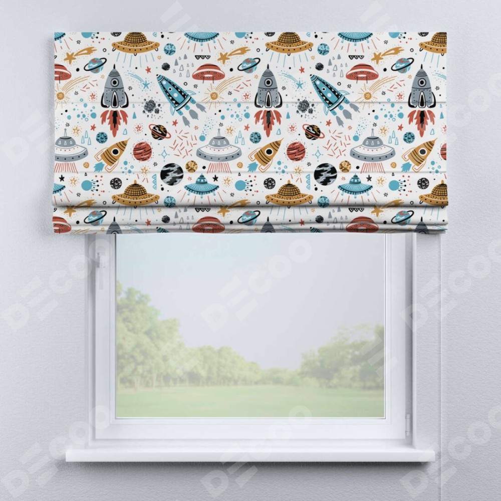 Римская штора «Кортин» для проема «Космическое приключение» отлично подойдёт для интерьера:.