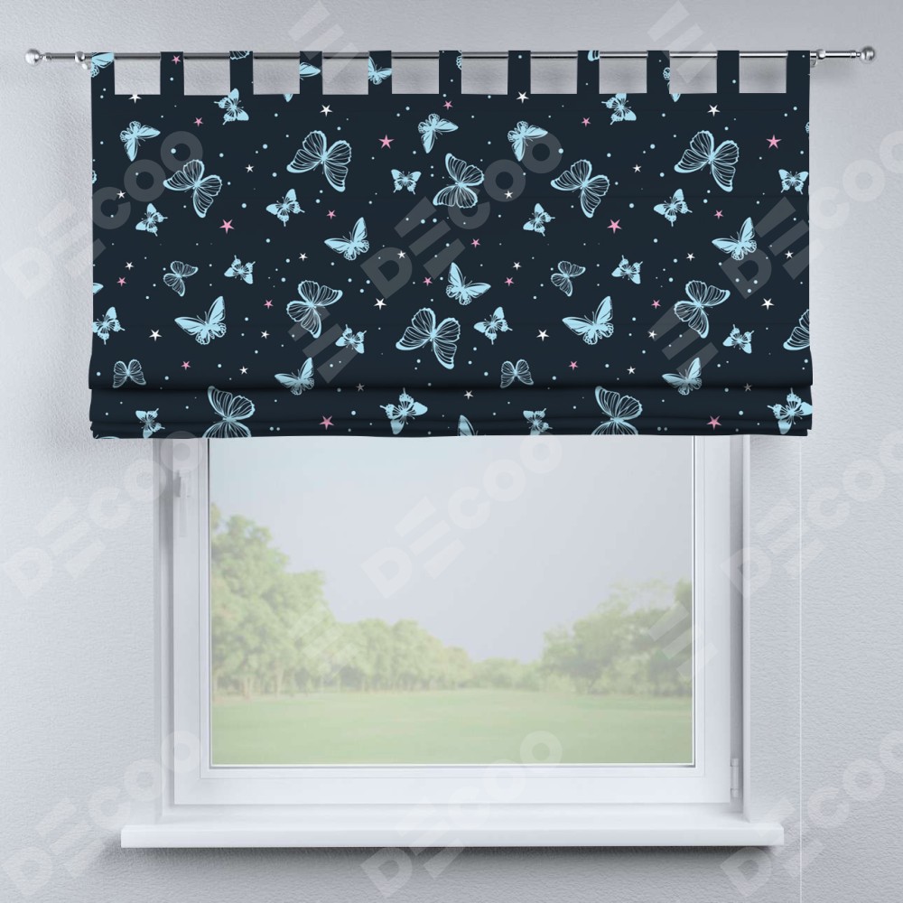 Римская штора производителя «Cortin», используется для проёма, пошита из ткани блэкаут с нанесением сублимационной печати «Неоновые бабочки». Данная модель пошита на петлях, комплектуется на выбор круглым карнизом и подходит для монтажа на стену. Римская штора на петлях имеет простую систему регулировки высоты, отличительным преимуществом данной модели является простой способ монтажа. Достаточно повесить ее на трубу и штора готова!