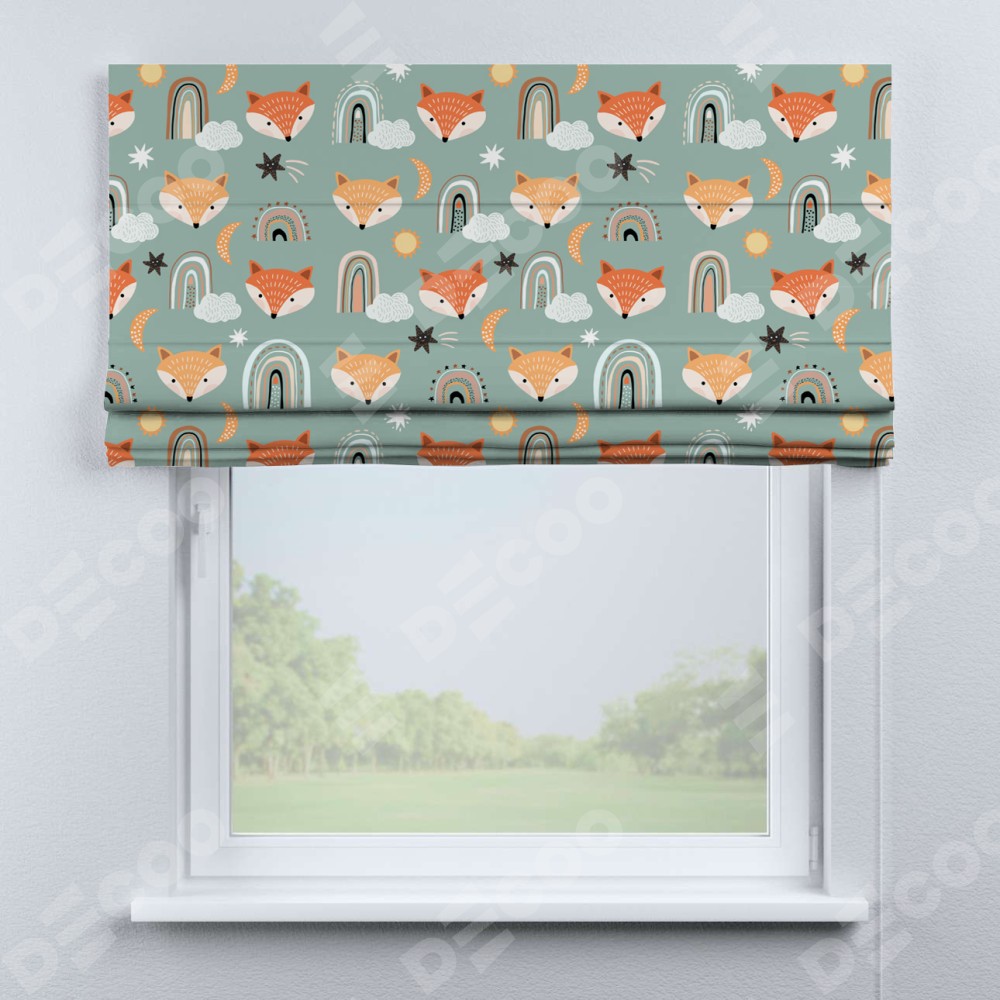 Римская штора производителя «Cortin», используется для проёма, пошита из ткани блэкаут с нанесением сублимационной печати «Озорные лисички». Имеет универсальный механизм и подходит для монтажа: на потолок, на стену и в нишу.