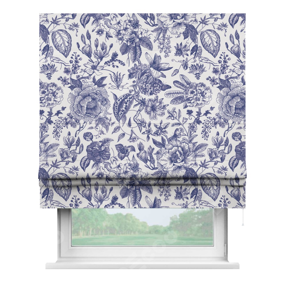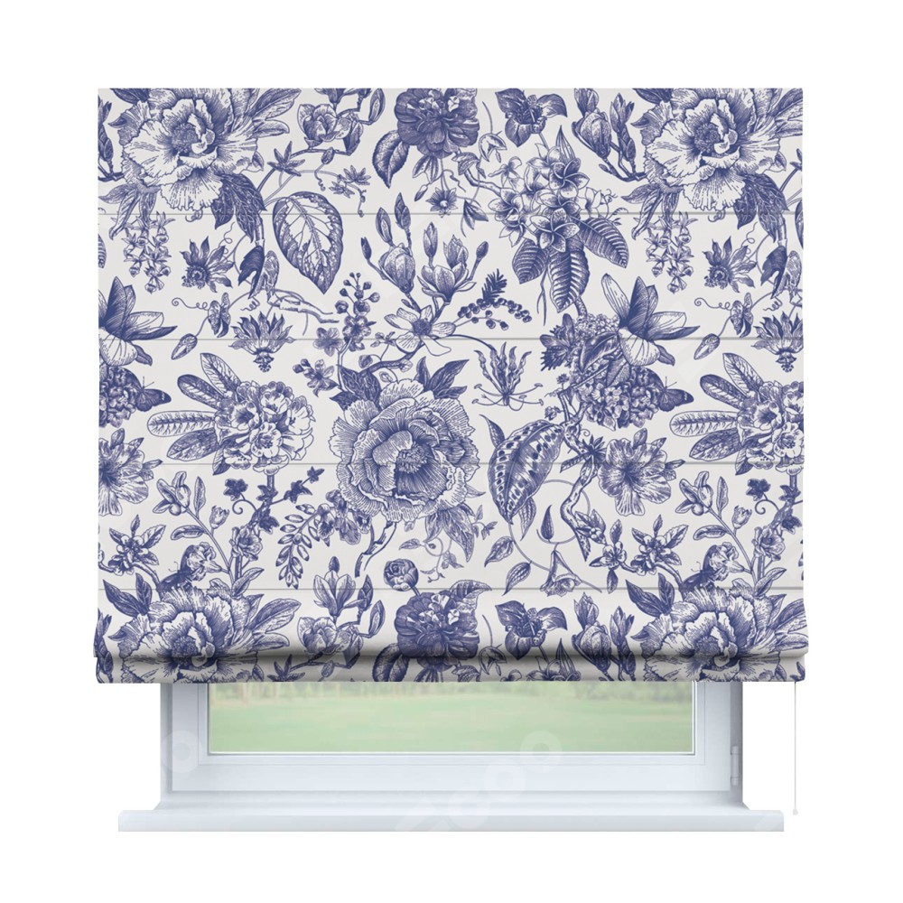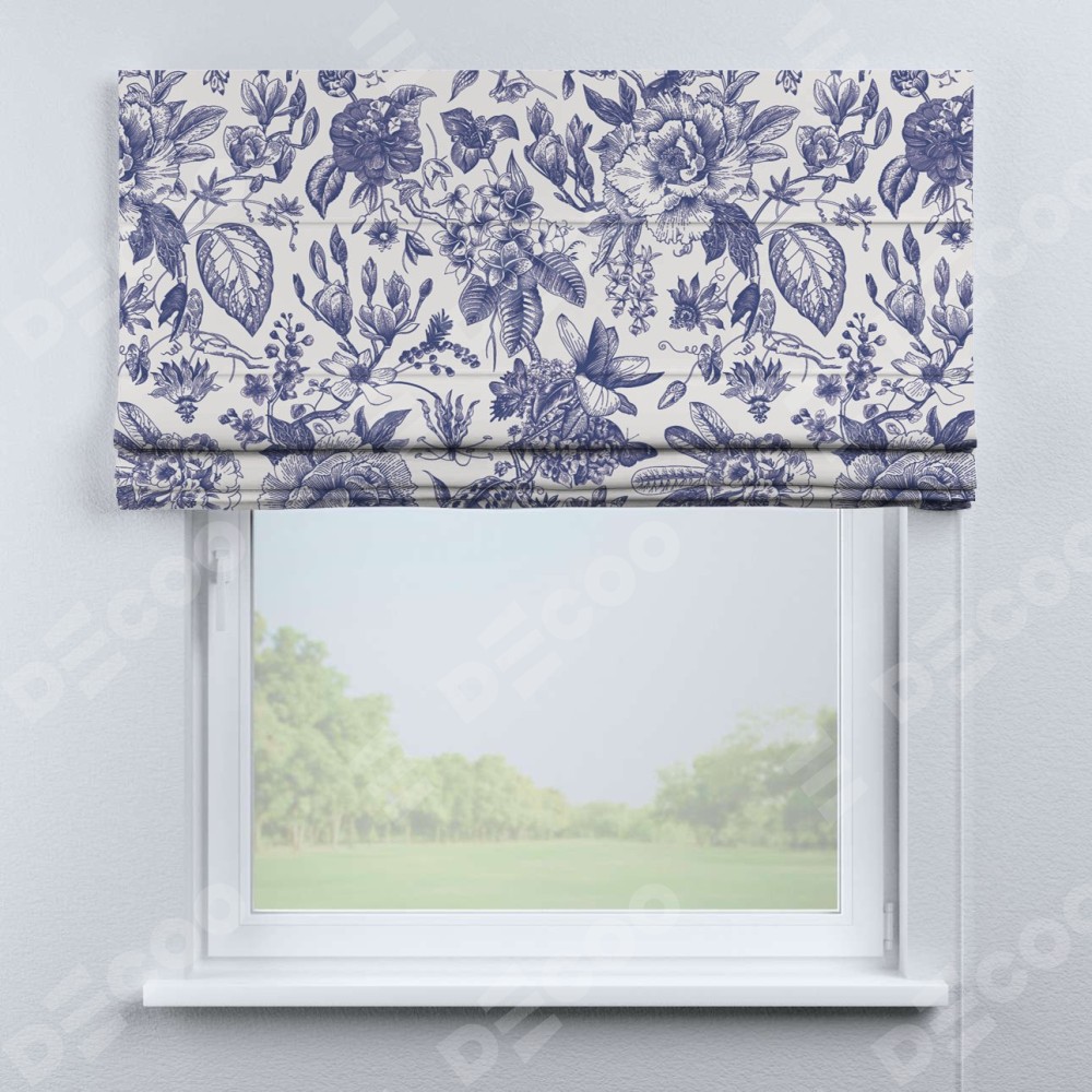 Римская штора производителя «Cortin», используется для проёма, пошита из ткани блэкаут с нанесением сублимационной печати «Прованс в синем». Имеет универсальный механизм и подходит для монтажа: на потолок, на стену и в нишу.