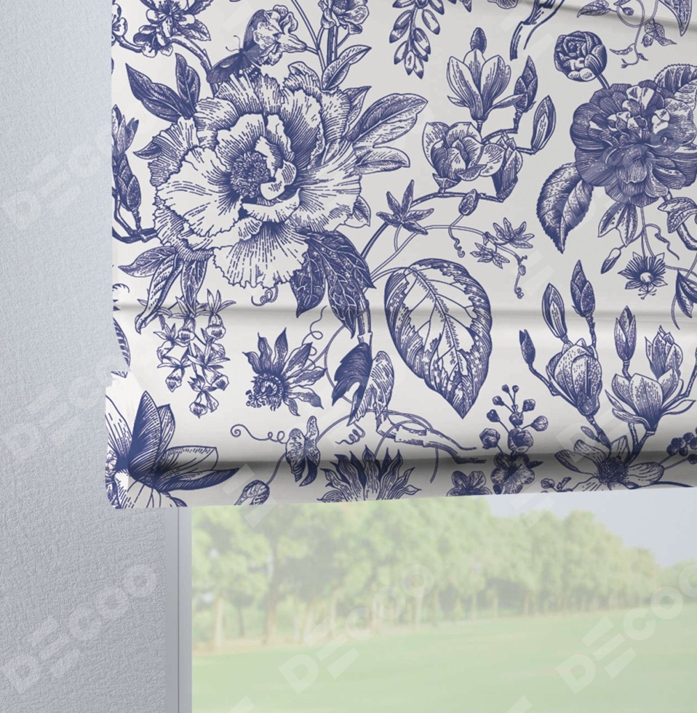 Римская штора производителя «Cortin», используется для проёма, пошита из ткани блэкаут с нанесением сублимационной печати «Прованс в синем». Данная модель пошита на петлях, комплектуется на выбор круглым карнизом и подходит для монтажа на стену. Римская штора на петлях имеет простую систему регулировки высоты, отличительным преимуществом данной модели является простой способ монтажа. Достаточно повесить ее на трубу и штора готова!