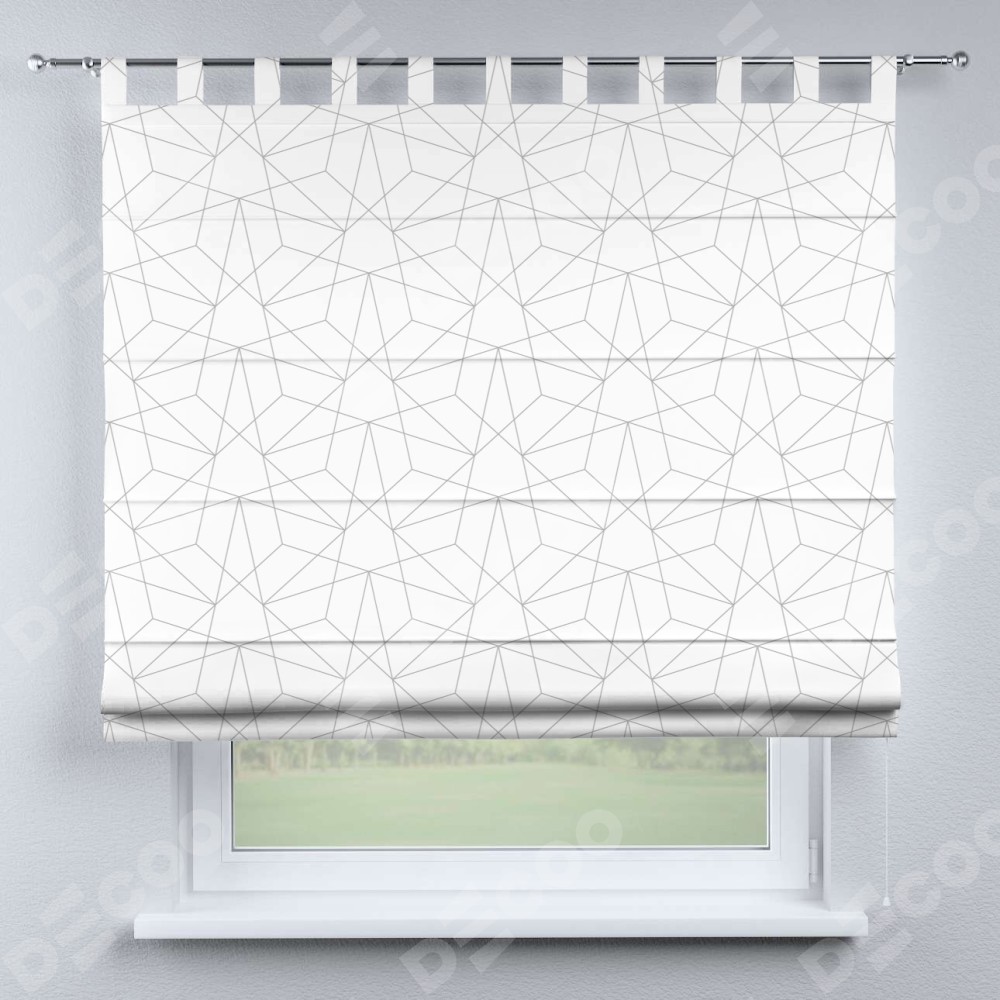 Римская штора производителя «Cortin», используется для проёма, пошита из ткани блэкаут с нанесением сублимационной печати «Простая геометрия». Данная модель пошита на петлях, комплектуется на выбор круглым карнизом и подходит для монтажа на стену. Римская штора на петлях имеет простую систему регулировки высоты, отличительным преимуществом данной модели является простой способ монтажа. Достаточно повесить ее на трубу и штора готова!
