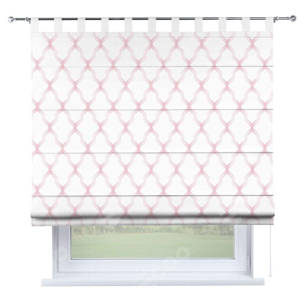 Римская штора производителя «Cortin», используется для проёма, пошита из ткани блэкаут с нанесением сублимационной печати «Розовые ромбы». Данная модель пошита на петлях, комплектуется на выбор круглым карнизом и подходит для монтажа на стену. Римская штора на петлях имеет простую систему регулировки высоты, отличительным преимуществом данной модели является простой способ монтажа. Достаточно повесить ее на трубу и штора готова!