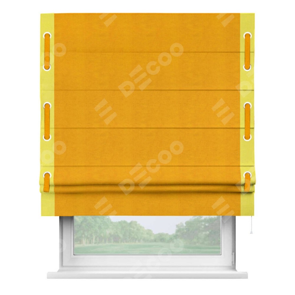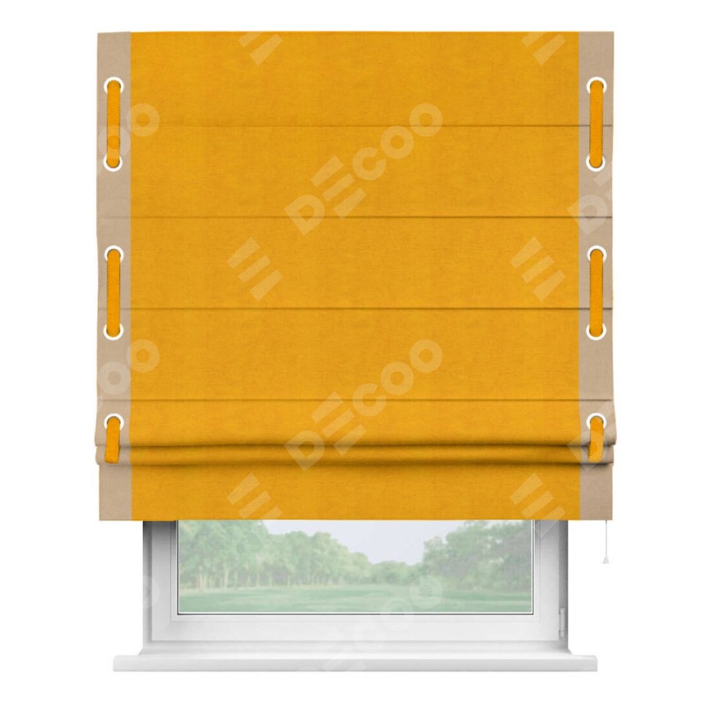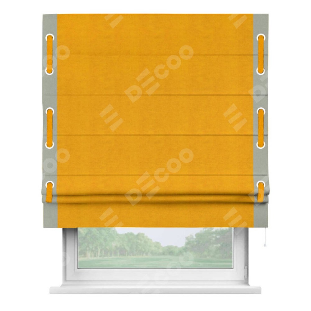 Римская штора «Кортин» с кантом Стрим Дуо (люверсы с пояском), для проема, ткань вельвет желтый