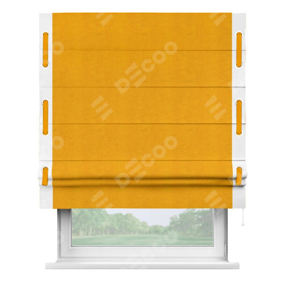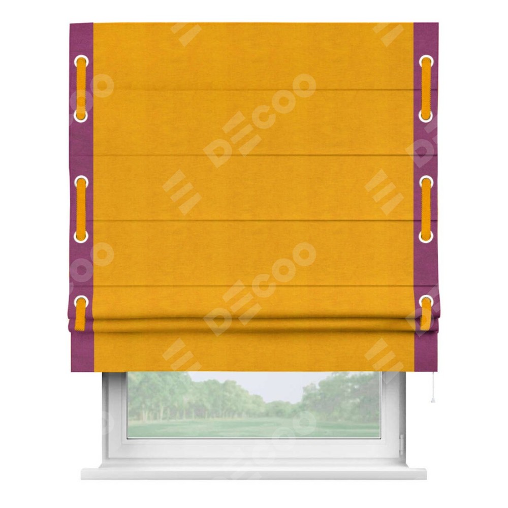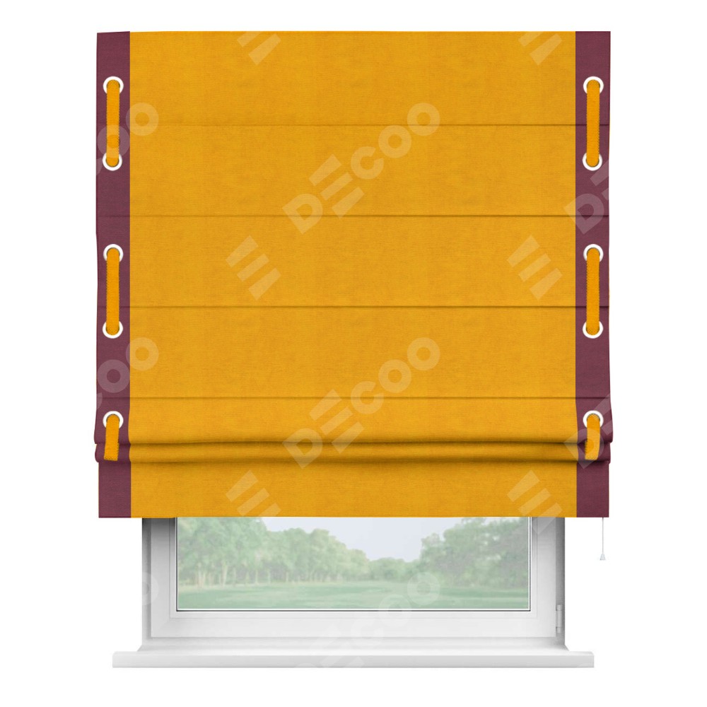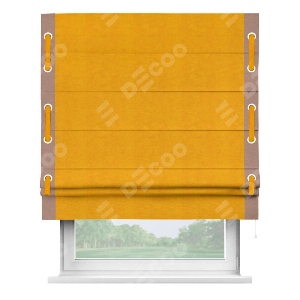Римская штора «Кортин» с кантом Стрим Дуо (люверсы с пояском), для проема, ткань вельвет желтый