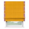 Римская штора производителя «Cortin», используется для проёма, пошита из ткани вельвет желтый, артикул ткани 85547. Отделка шторы кантом «Стрим Дуо» на кантах расположены люверсы с пояском, ткань для канта используется из вельвета разной расцветки на выбор. Ткань для пояска обычно используется из основной ткани шторы, а так же можно сделать из любой расцветки по желанию. Имеет универсальный механизм и подходит для монтажа: на потолок, на стену и в нишу.