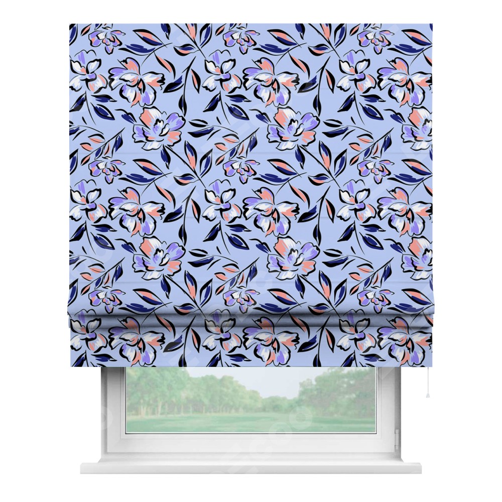 Римская штора производителя «Cortin», используется для проёма, пошита из ткани блэкаут с нанесением сублимационной печати «Цветочки и листочки». Имеет универсальный механизм и подходит для монтажа: на потолок, на стену и в нишу.