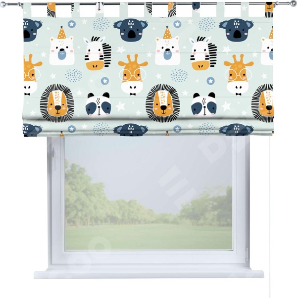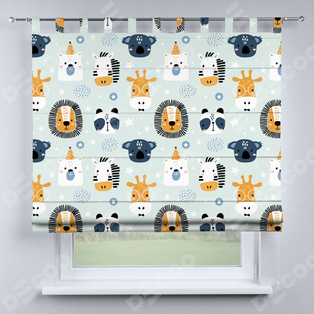 Римская штора производителя «Cortin», используется для проёма, пошита из ткани блэкаут с нанесением сублимационной печати «Чудесный зоопарк». Данная модель пошита на петлях, комплектуется на выбор круглым карнизом и подходит для монтажа на стену. Римская штора на петлях имеет простую систему регулировки высоты, отличительным преимуществом данной модели является простой способ монтажа. Достаточно повесить ее на трубу и штора готова!