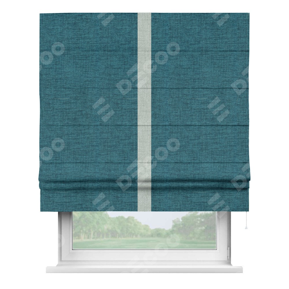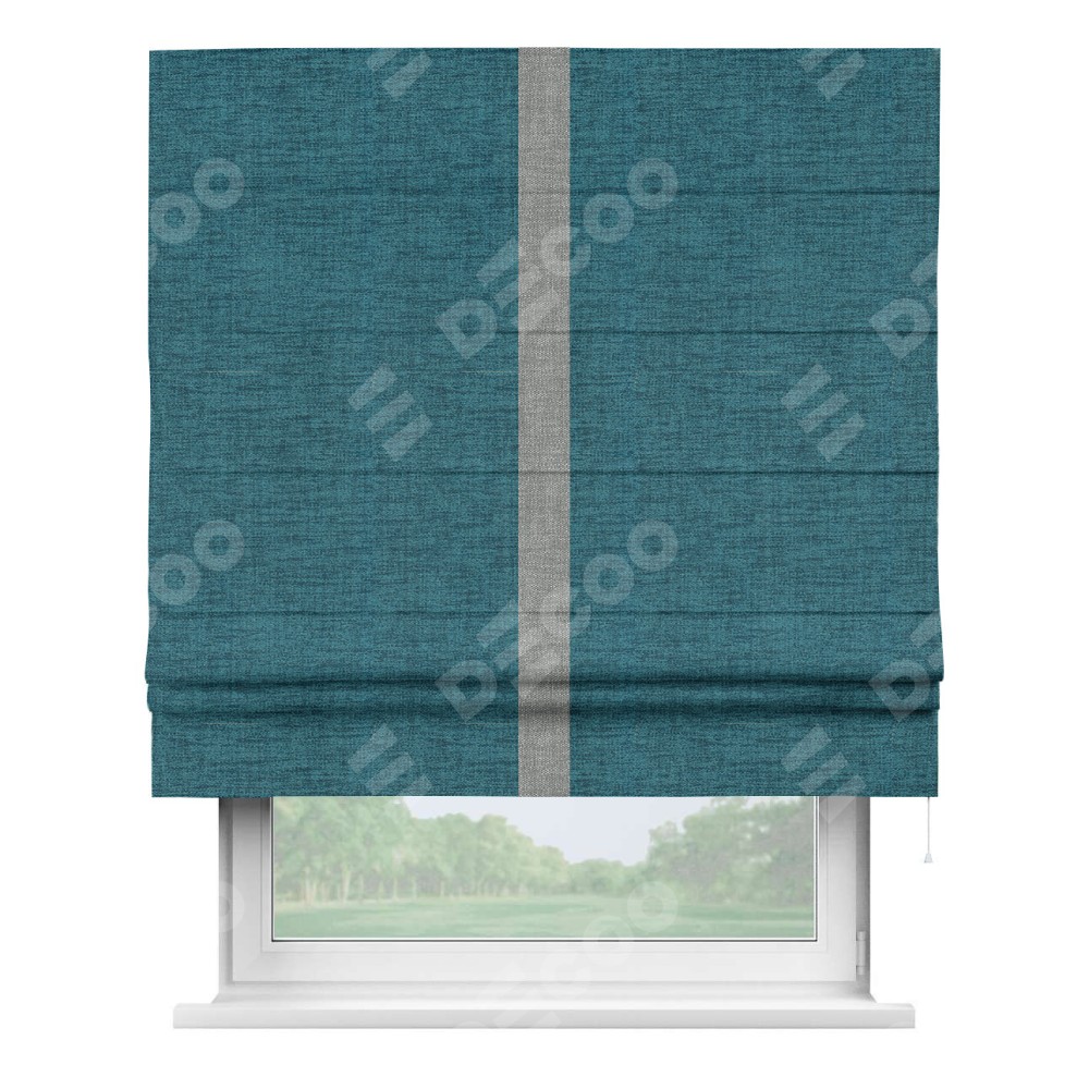 Римская штора «Кортин» с кантом Хайвэй, для проема, ткань рогожка димаут, синий