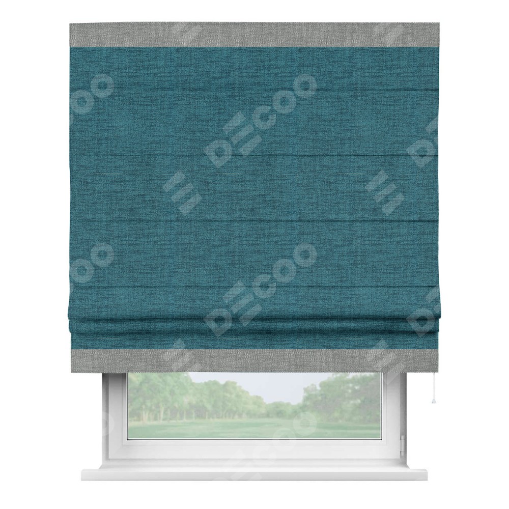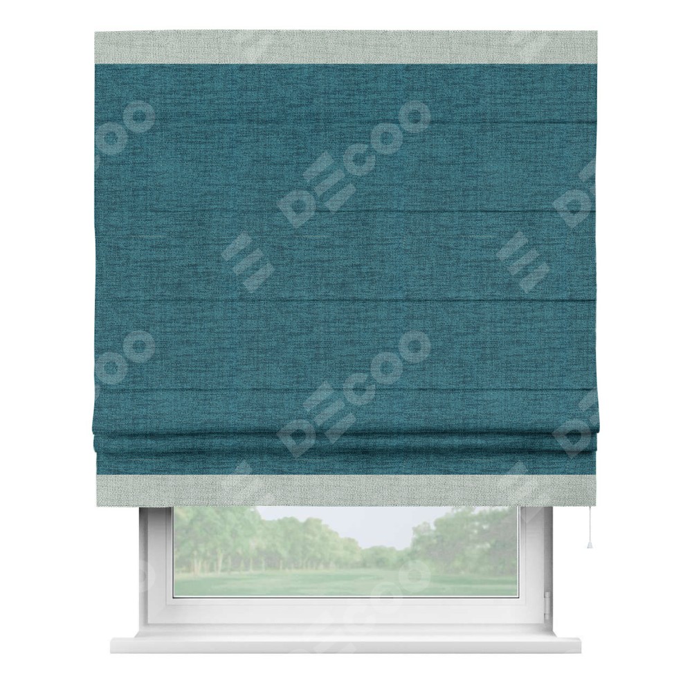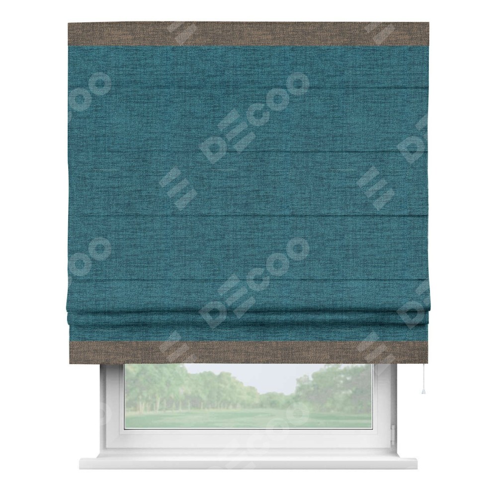 Римская штора «Кортин» с кантом Горизонт, для проема, ткань рогожка димаут, синий