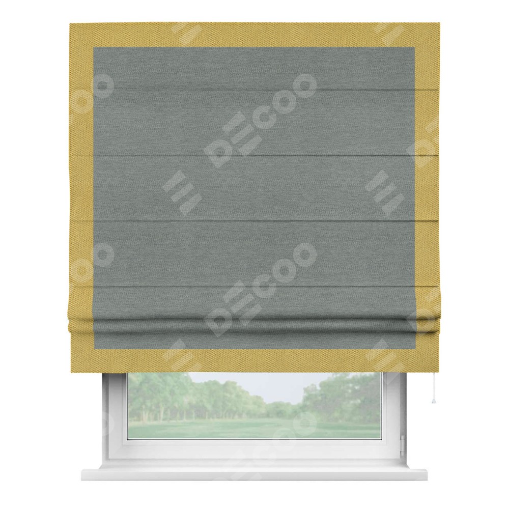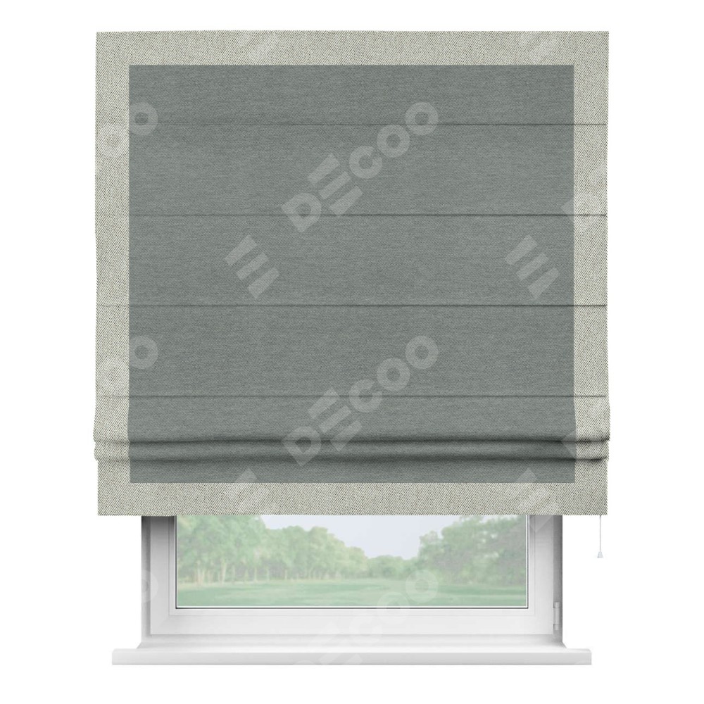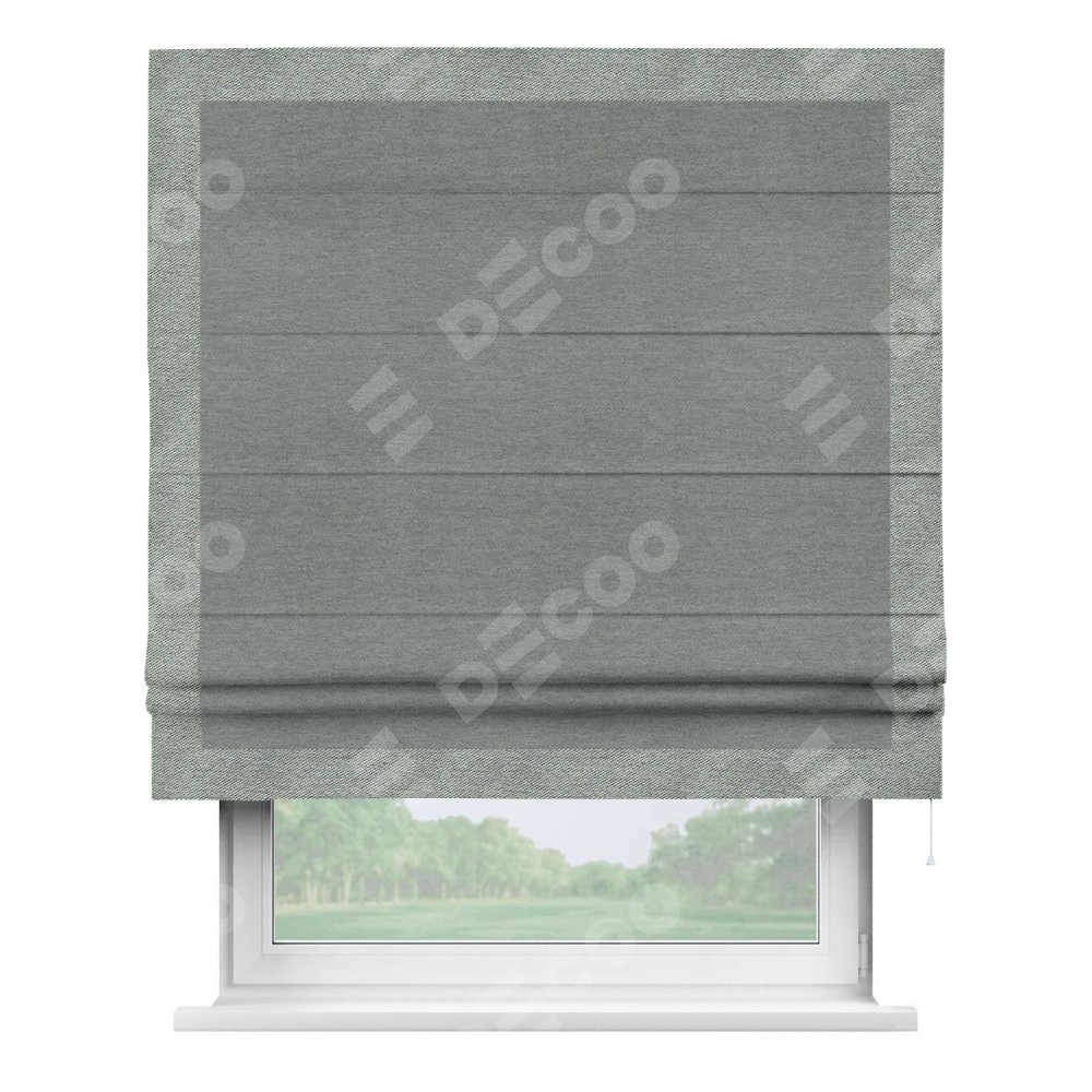 Римская штора производителя «Cortin», используется для проёма, пошита из ткани твид блэкаут серый, артикул 21577. Отделка шторы кантом «Чесс», ткань для канта используется из твида разной расцветки на выбор. Имеет универсальный механизм и подходит для монтажа: на потолок, на стену и в нишу.