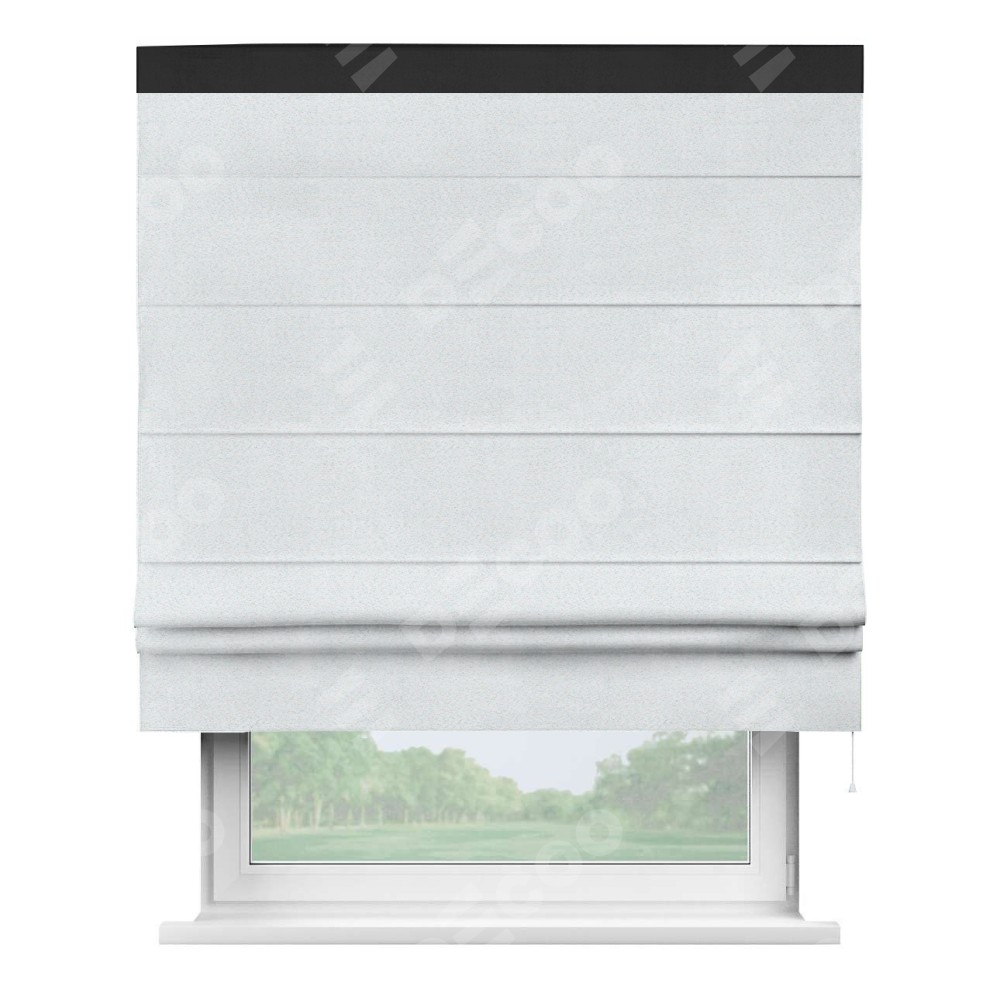 Римская штора производителя «Cortin», используется для проёма, пошита из ткани блэкаут однотонный дымчато-белый, артикул ткани 101. Отделка шторы кантом «Кинг», ткань для канта используется из блэкаута однотонного разной расцветки на выбор. Имеет универсальный механизм и подходит для монтажа: на потолок, на стену и в нишу.