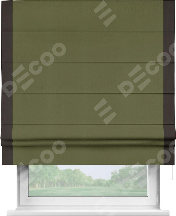 Римская штора «Кортин» с кантом Стрим Дуо, для проема, ткань блэкаут однотонный зелёный