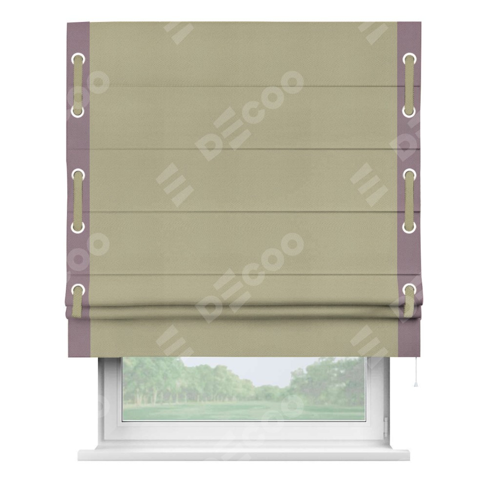 Римская штора «Кортин» с кантом Стрим Дуо (люверсы с пояском), для проема, ткань блэкаут однотонный милано капучино