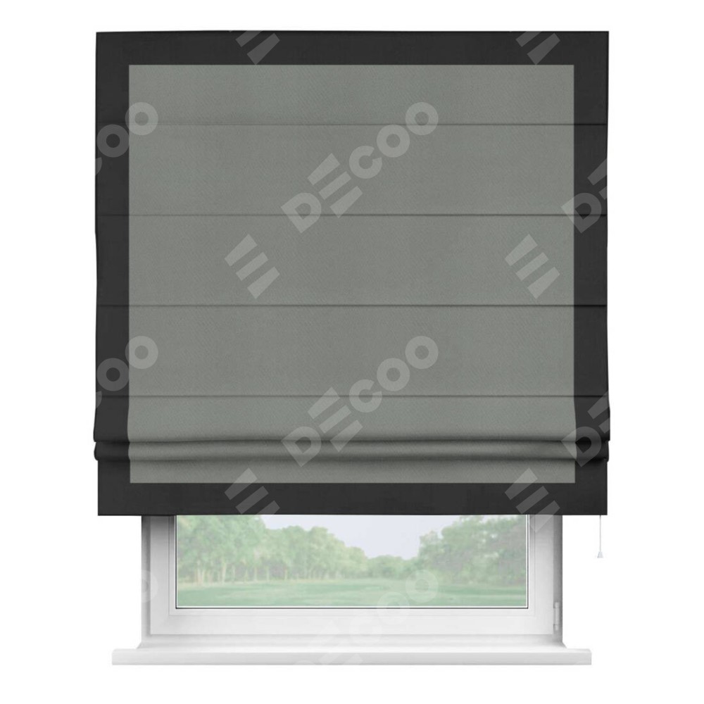 Римская штора «Кортин» с кантом Чесс, для проема, ткань блэкаут однотонный тёмно-серый