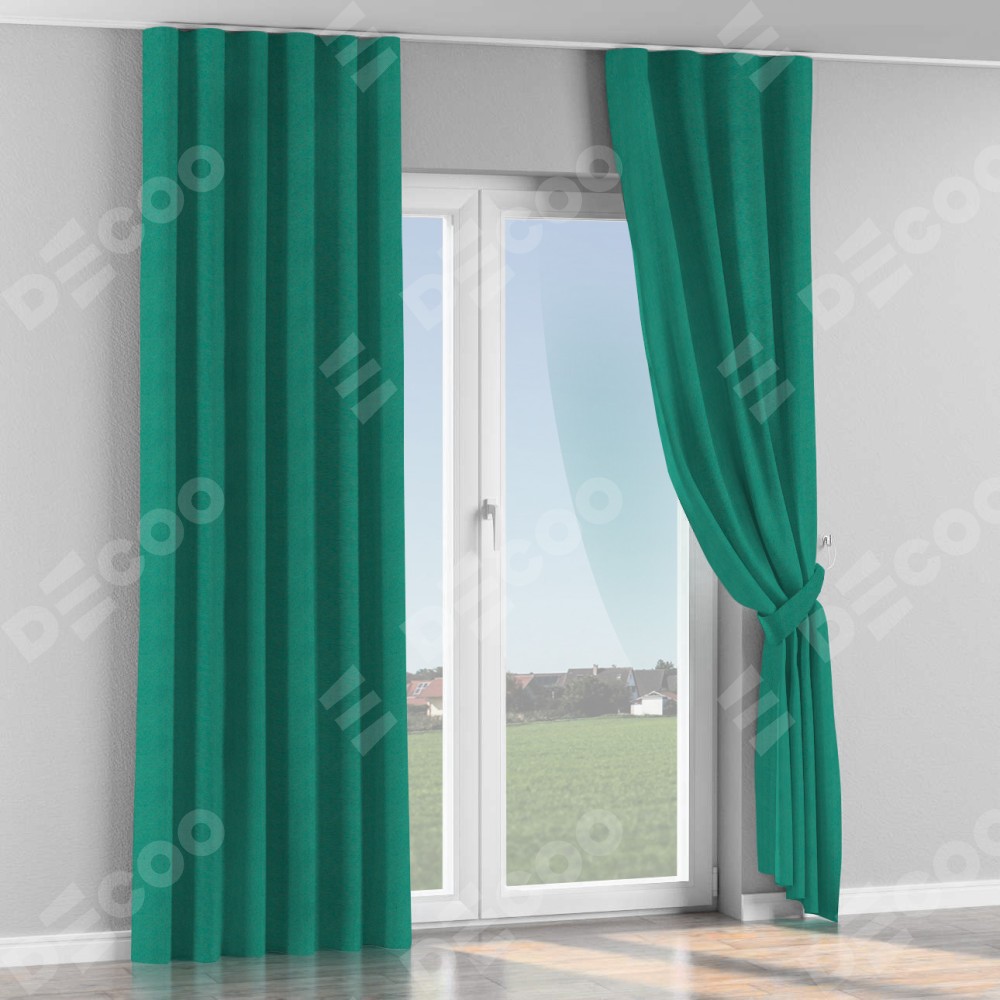 Комплект прямых штор, от производителя «Cortin», пошиты из ткани блэкаут с блеском изумрудный, артикул ткани 34628. С изнаночной стороны в верхней части штор пристрачивается шторная лента с декоративными складками «Волна». Обратная сторона основного материала черного цвета, что обеспечивает необходимую светонепроницаемость. Для создания элегантных складок прямые шторы шьются по стандарту с коэффициентом 1:2 (на 100 см. ширины проёма 200 см. ширины ткани).