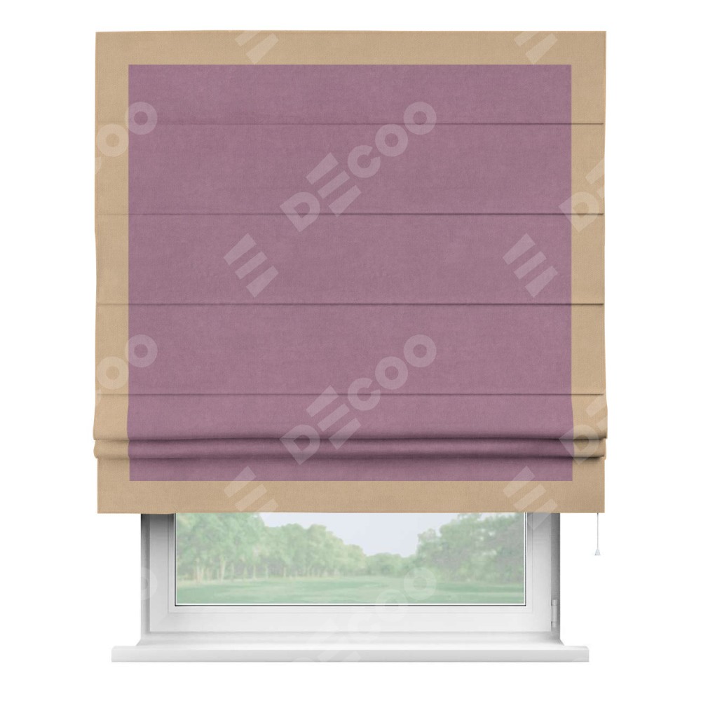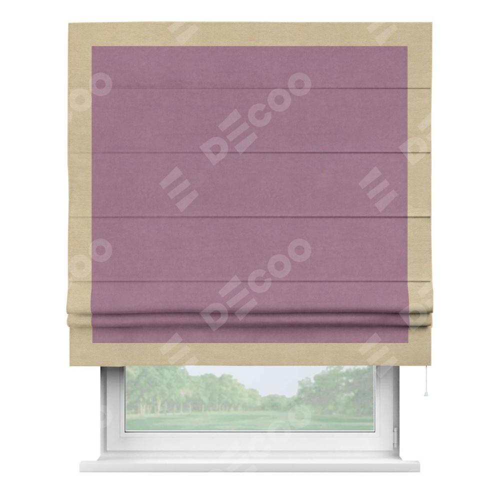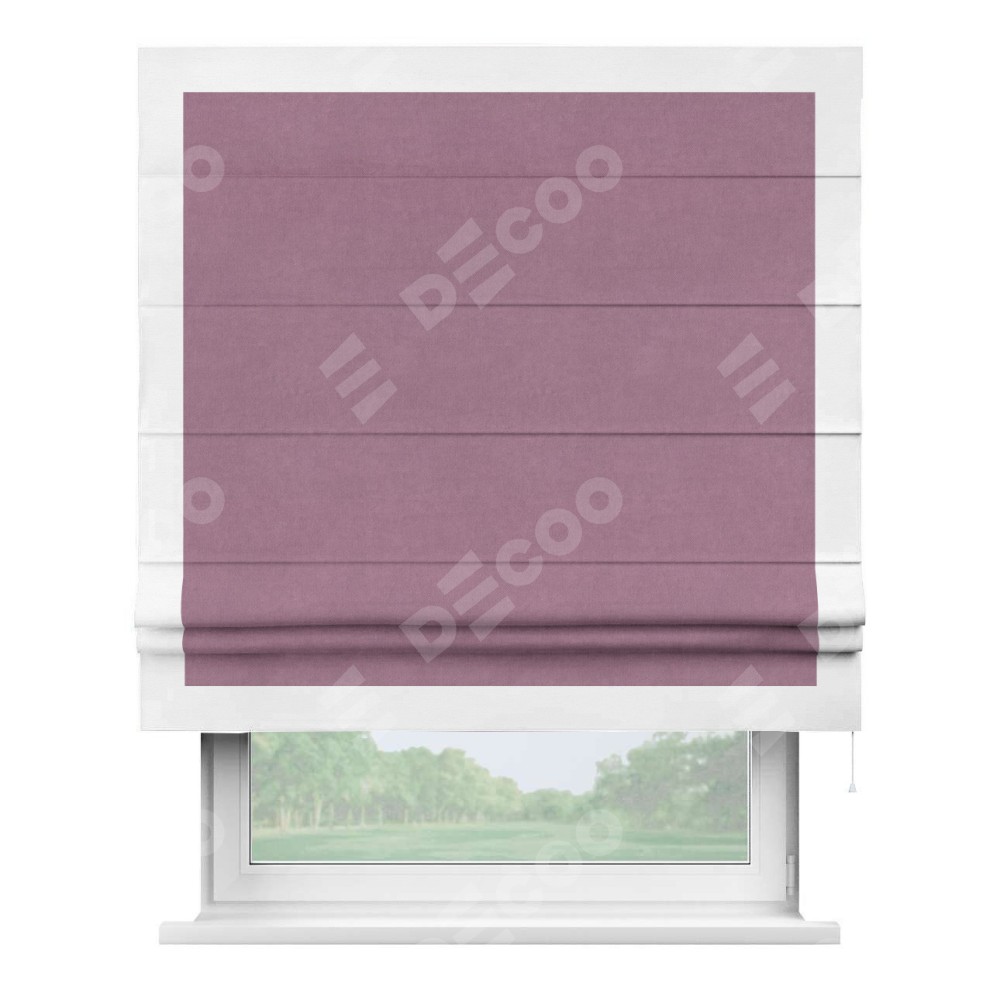 Римская штора «Кортин» с кантом Чесс, для проема, ткань вельвет лиловый