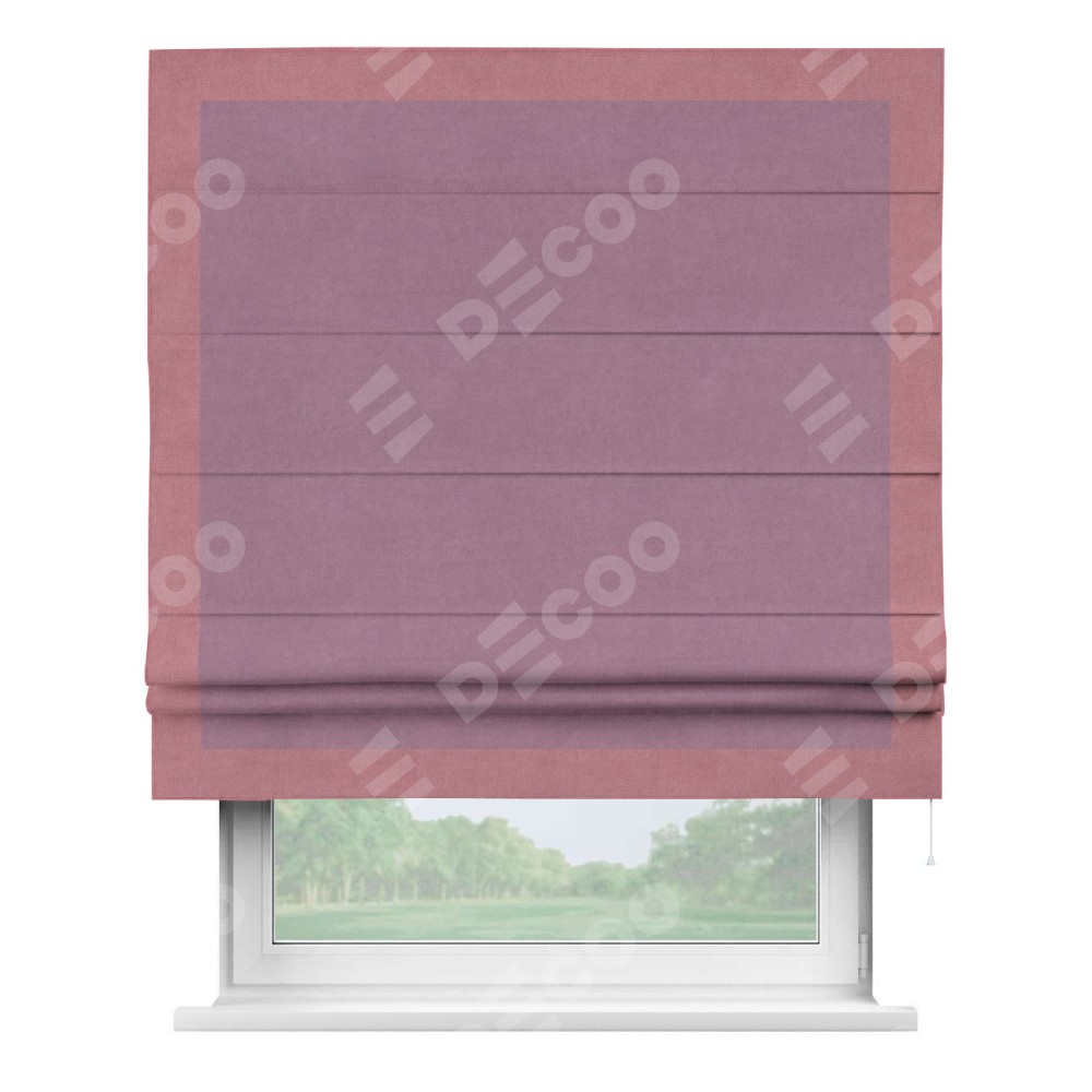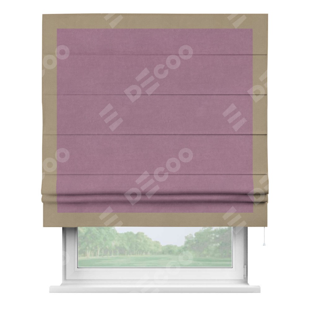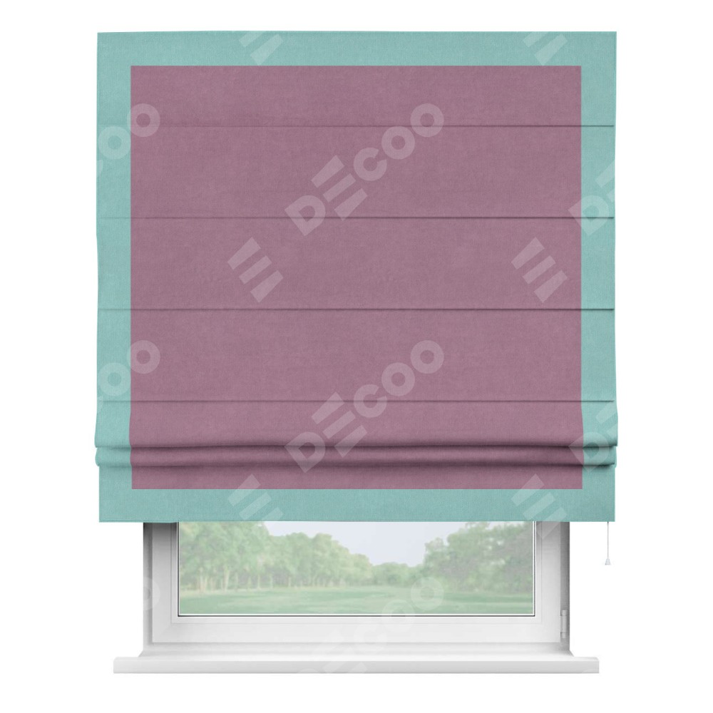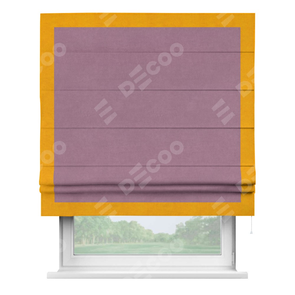 Римская штора «Кортин» с кантом Чесс, для проема, ткань вельвет лиловый
