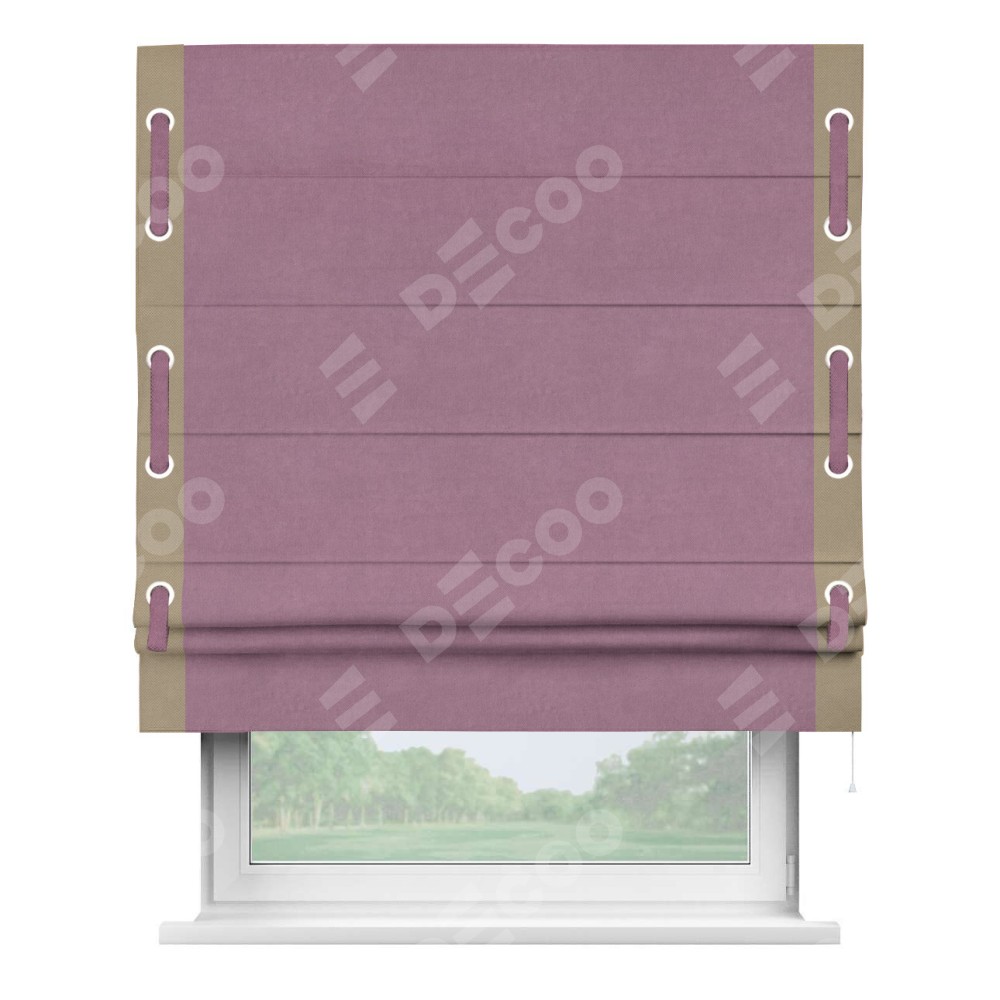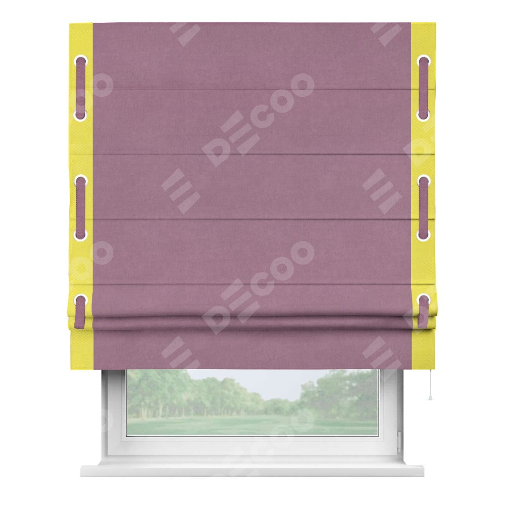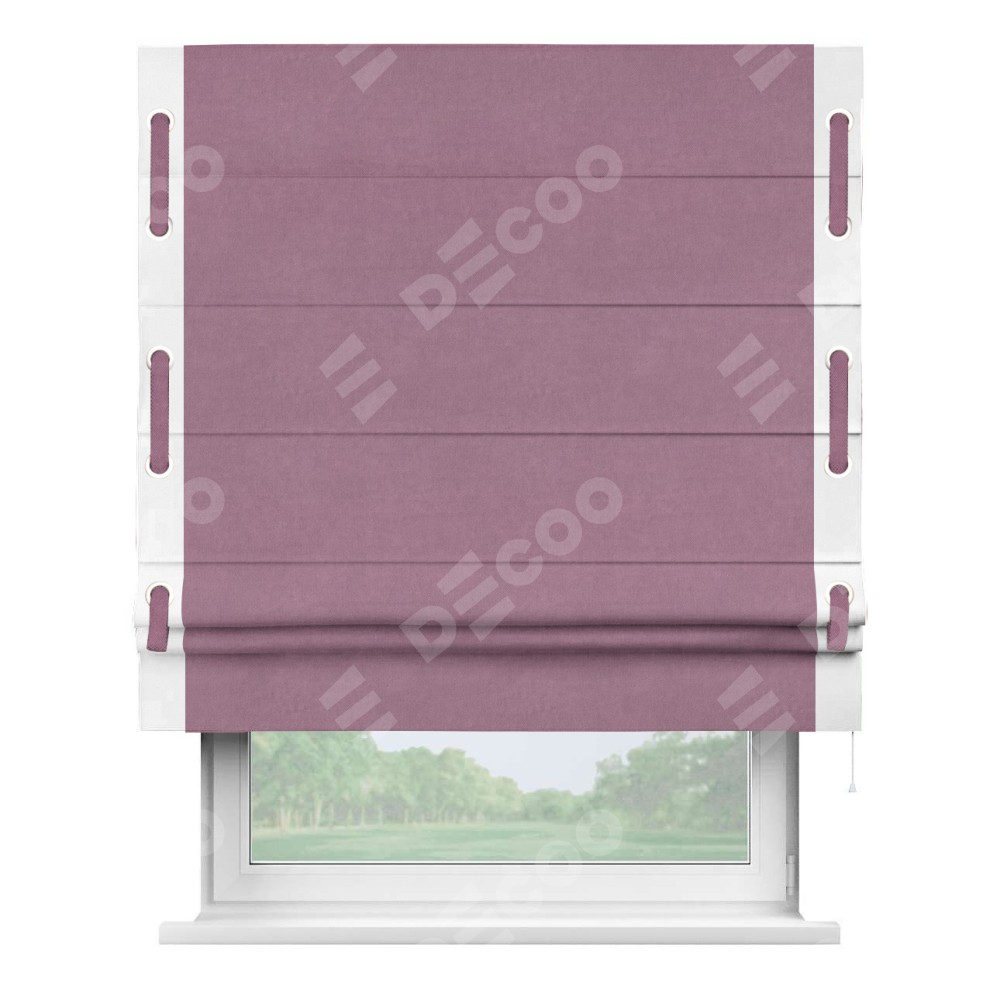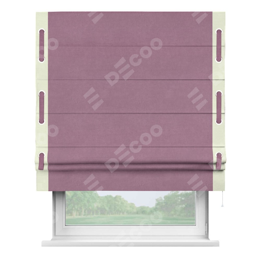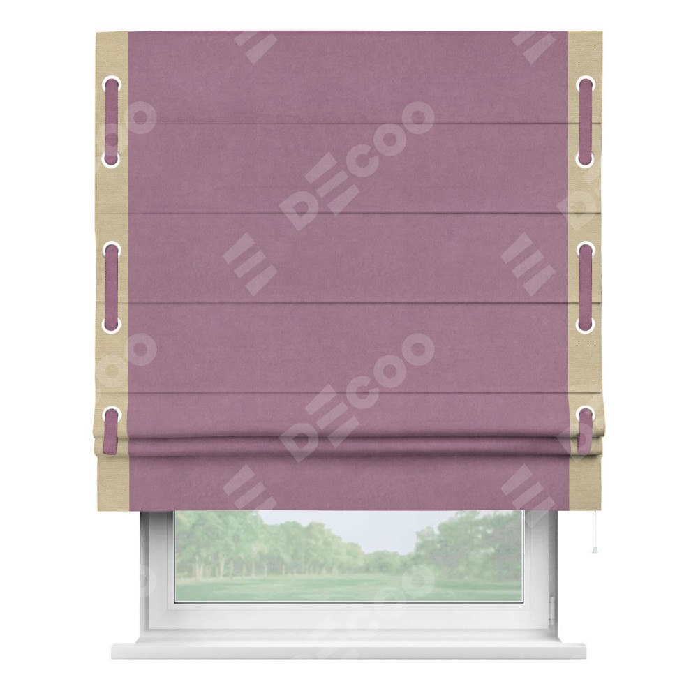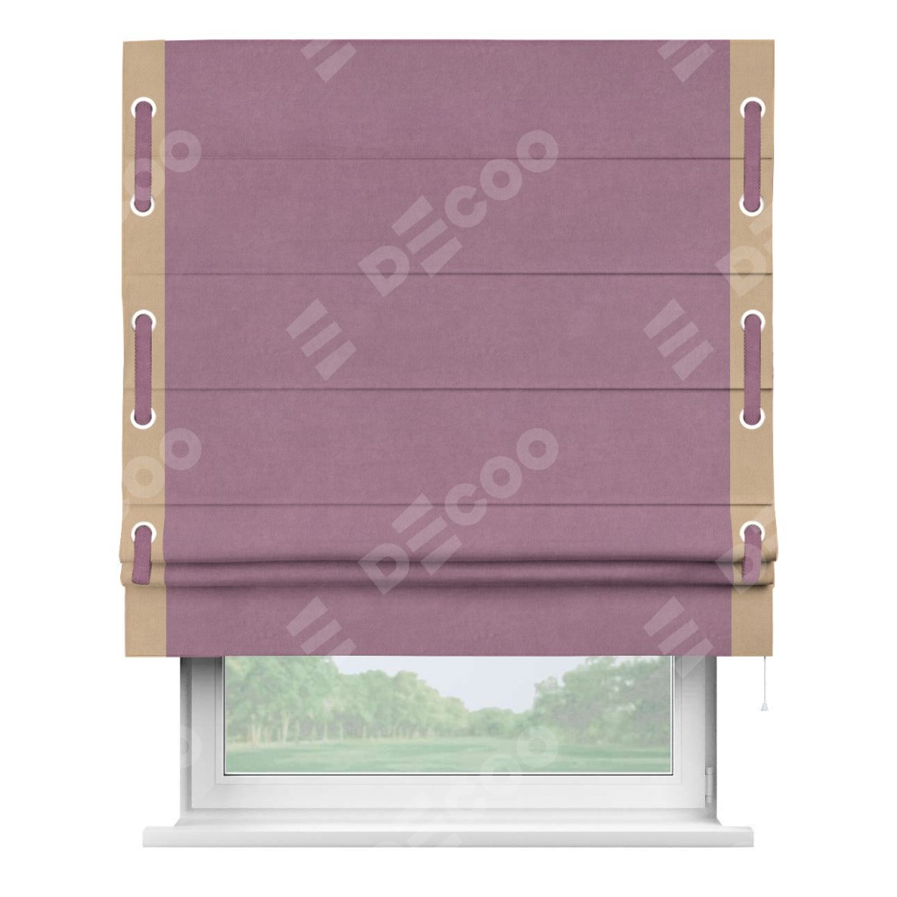 Римская штора «Кортин» с кантом Стрим Дуо (люверсы с пояском), для проема, ткань вельвет лиловый