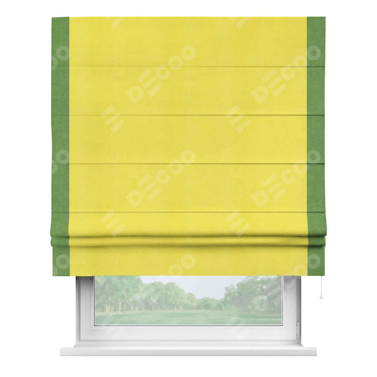 Римская штора «Кортин» с кантом Стрим Дуо, для проема, ткань вельвет cветло-желтый