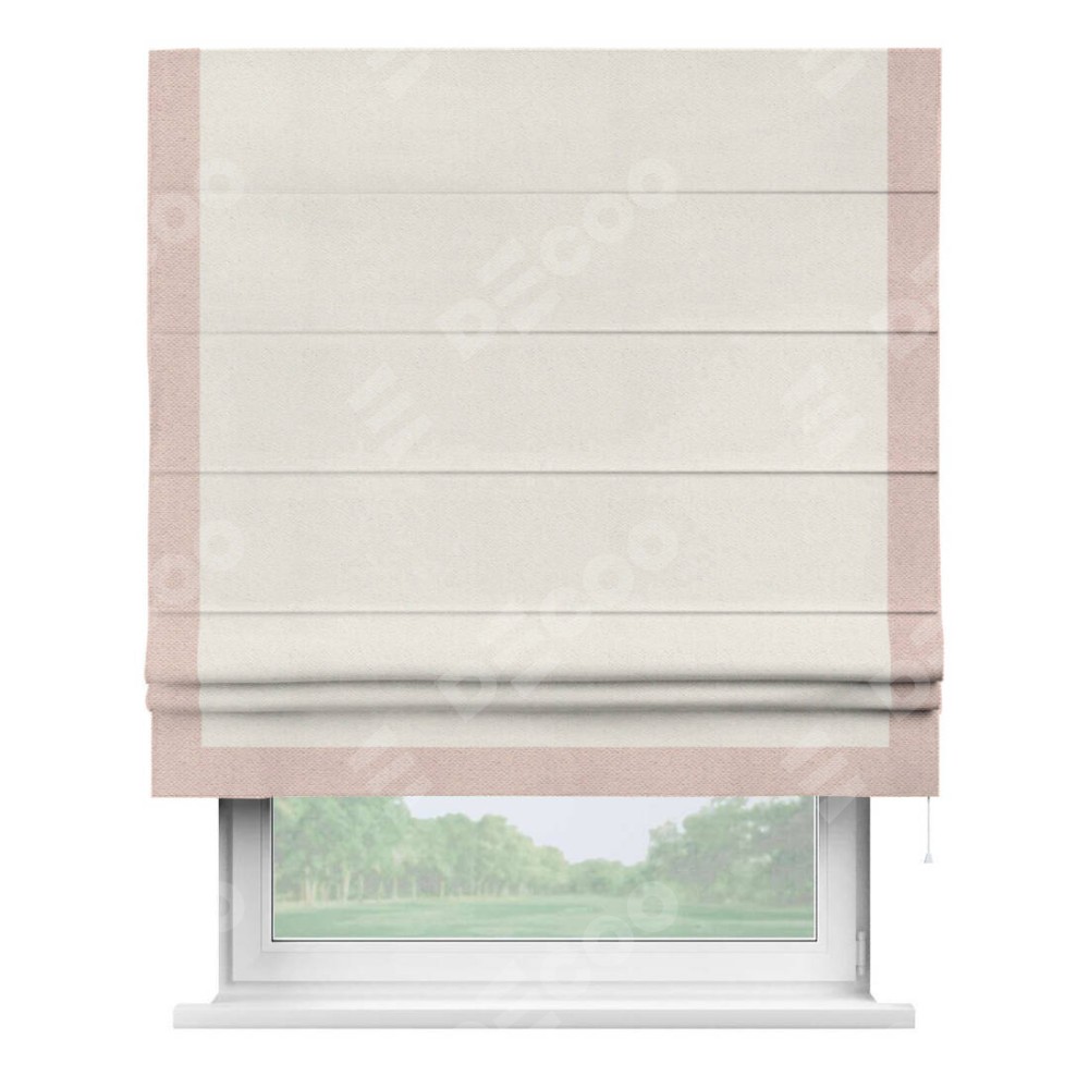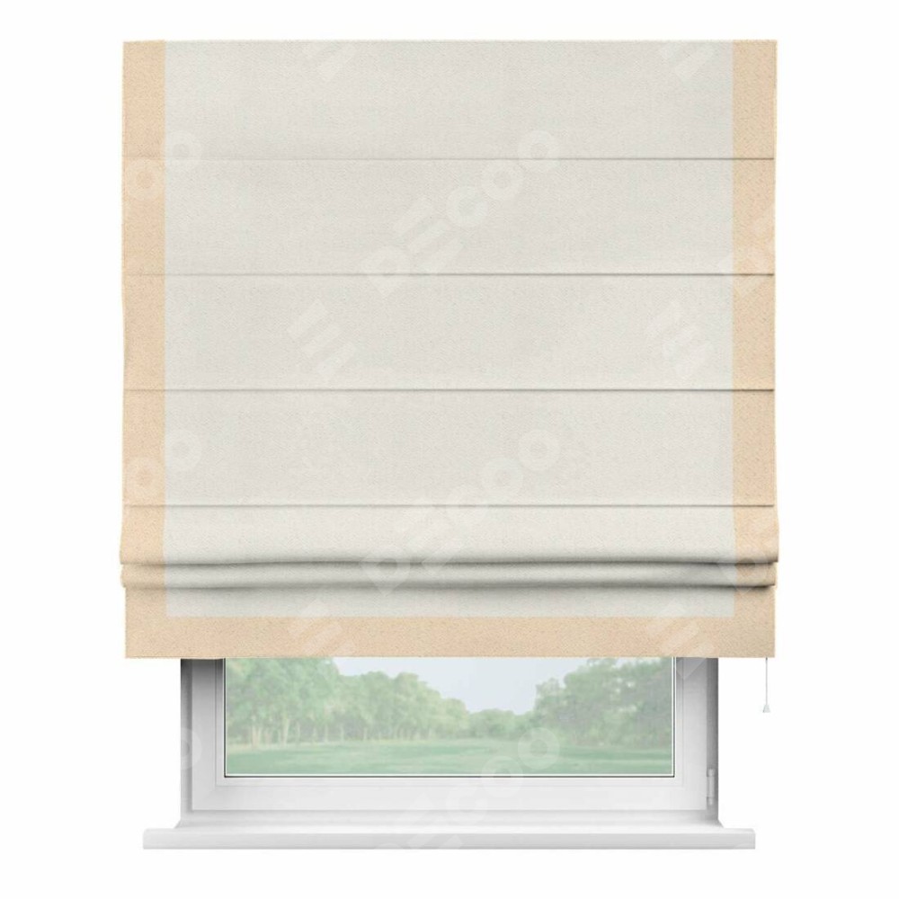 Римская штора производителя «Cortin», используется для проёма, пошита из ткани блэкаут с блеском светло-серый, артикул 34633. Отделка шторы кантом «Виктория», ткань для канта используется из блэкаута с блеском разной расцветки на выбор. Изнаночная сторона материала черного цвета, что обеспечивает необходимую светонепроницаемость. Имеет универсальный механизм и подходит для монтажа: на потолок, на стену и в нишу.