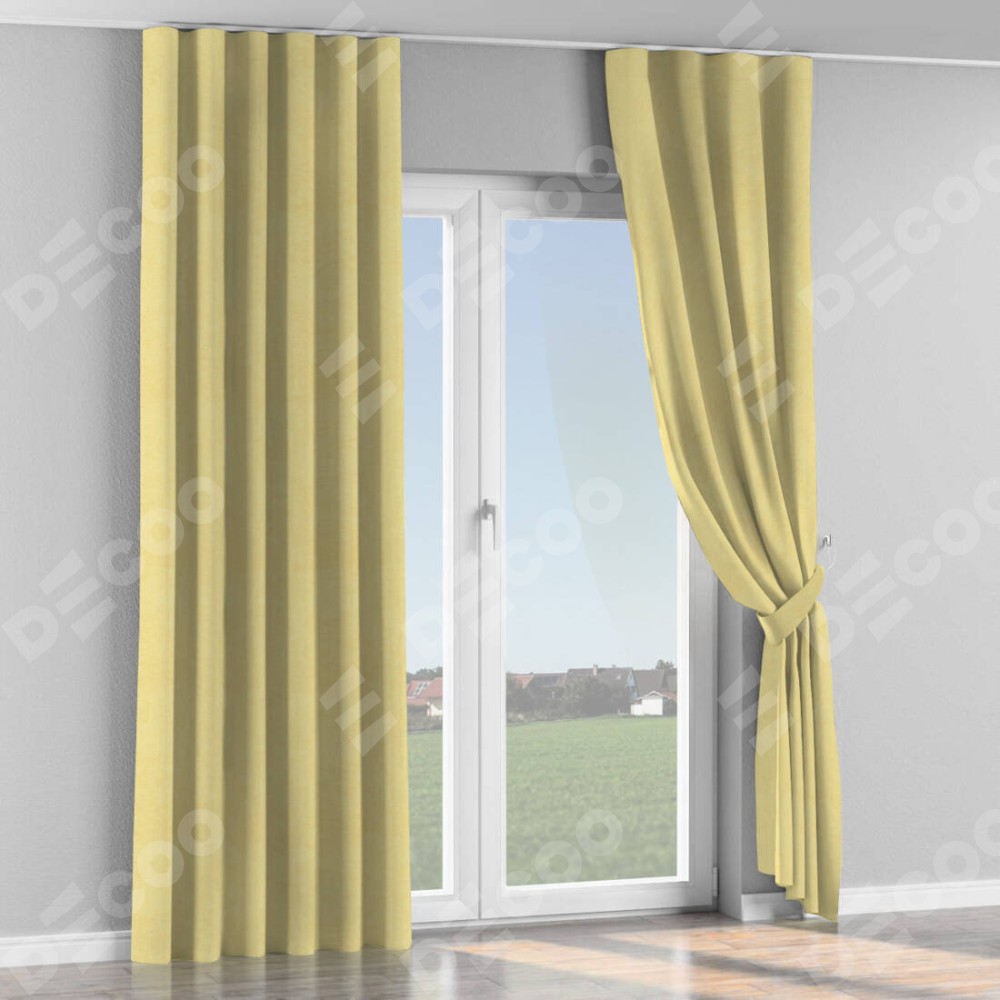 Комплект прямых штор, от производителя «Cortin», пошиты из ткани софт однотонный золотой, артикул ткани 42934. С изнаночной стороны в верхней части штор пристрачивается шторная лента с декоративными складками «Волна». Для создания элегантных складок прямые шторы шьются по стандарту с коэффициентом 1:2 (на 100 см. ширины проёма 200 см. ширины ткани).
