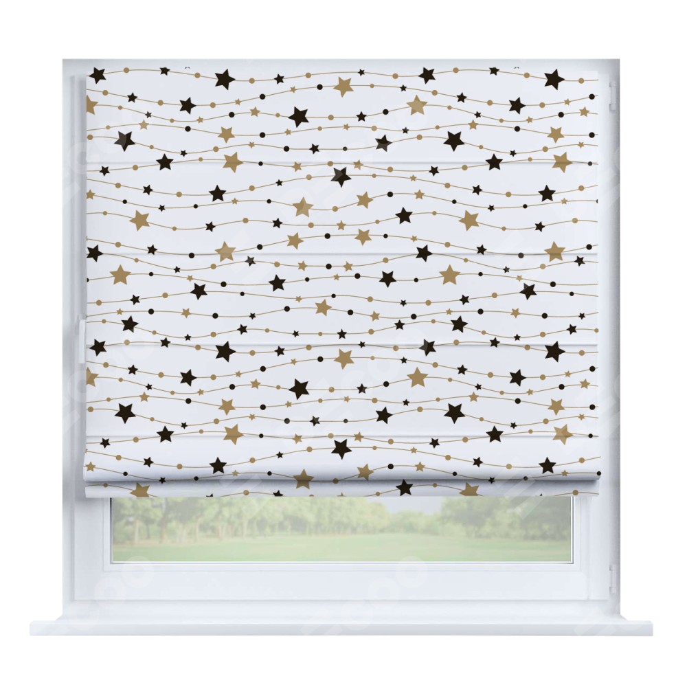 Римская штора производителя «Cortin», устанавливается на створку окна, пошита из ткани блэкаут с нанесением сублимационной печати «Звёздная нить». Штора шьётся по индивидуальным размерам, для данного типа римской шторы возможная ширина от 35 до 150 см., высота до 250 см.