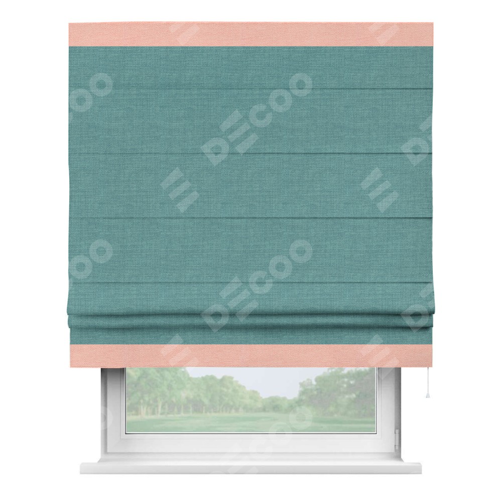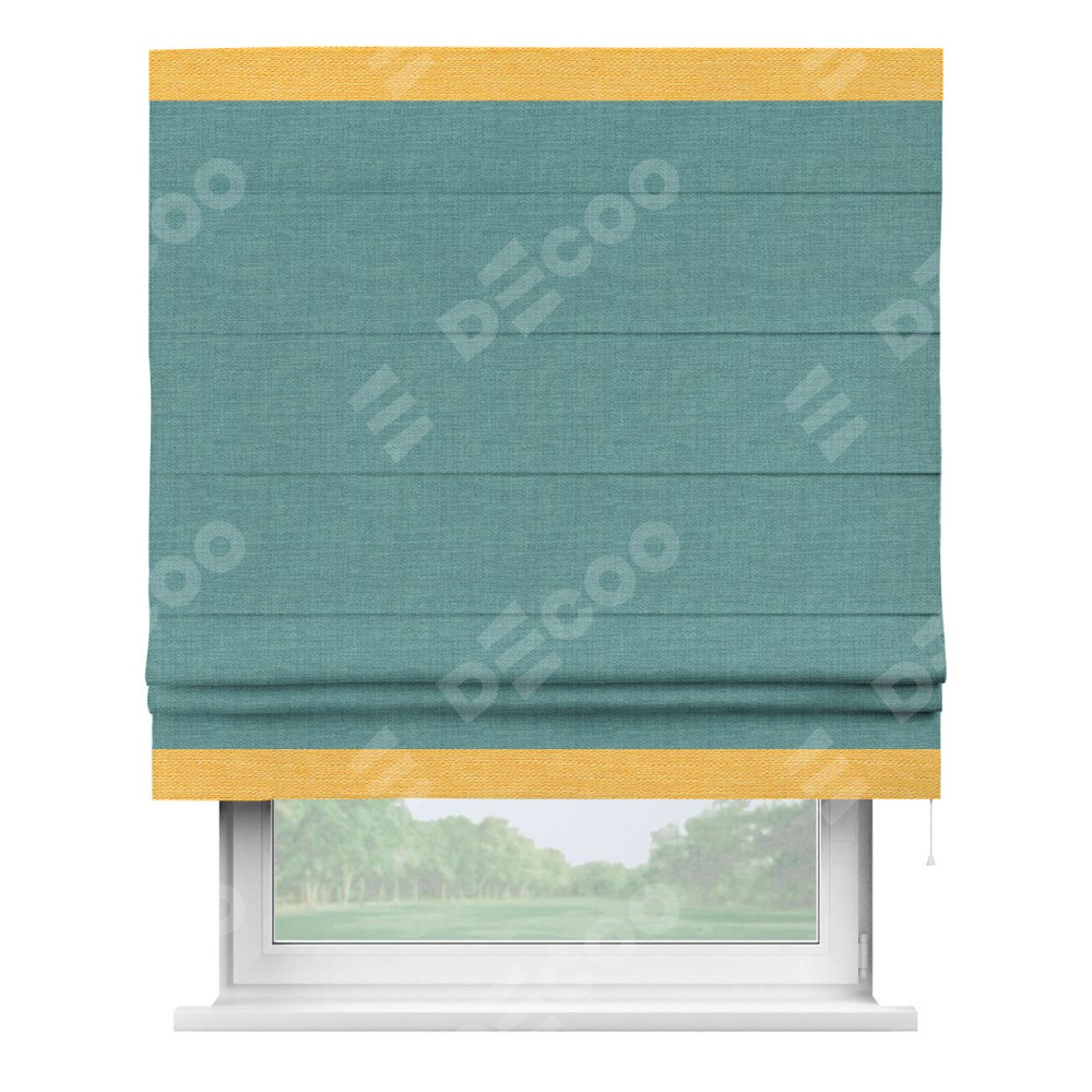 Римская штора «Кортин» с кантом Горизонт, для проема, ткань лён бирюза