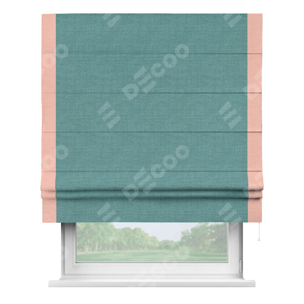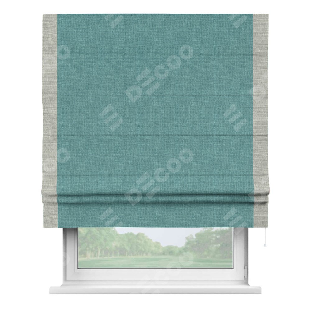 Римская штора «Кортин» с кантом Стрим Дуо, для проема, ткань лён бирюза, ширина 40−60 см