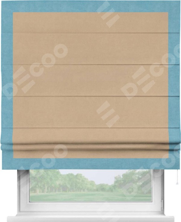 Римская штора «Кортин» с кантом Чесс, для проема, ткань вельвет песочный