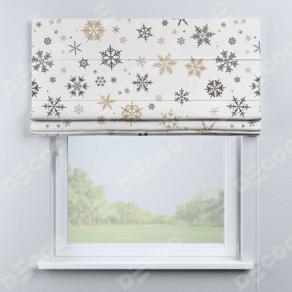 Римская штора производителя «Cortin», используется для проёма, пошита из ткани блэкаут с нанесением сублимационной печати «Зимняя метель». Имеет универсальный механизм и подходит для монтажа: на потолок, на стену и в нишу.
