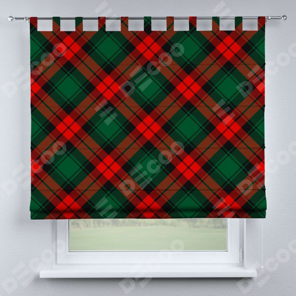 Римская штора производителя «Cortin», используется для проёма, пошита из ткани блэкаут с нанесением сублимационной печати «Красно-зелёная клетка». Данная модель пошита на петлях, комплектуется на выбор круглым карнизом и подходит для монтажа на стену. Римская штора на петлях имеет простую систему регулировки высоты, отличительным преимуществом данной модели является простой способ монтажа. Достаточно повесить ее на трубу и штора готова!