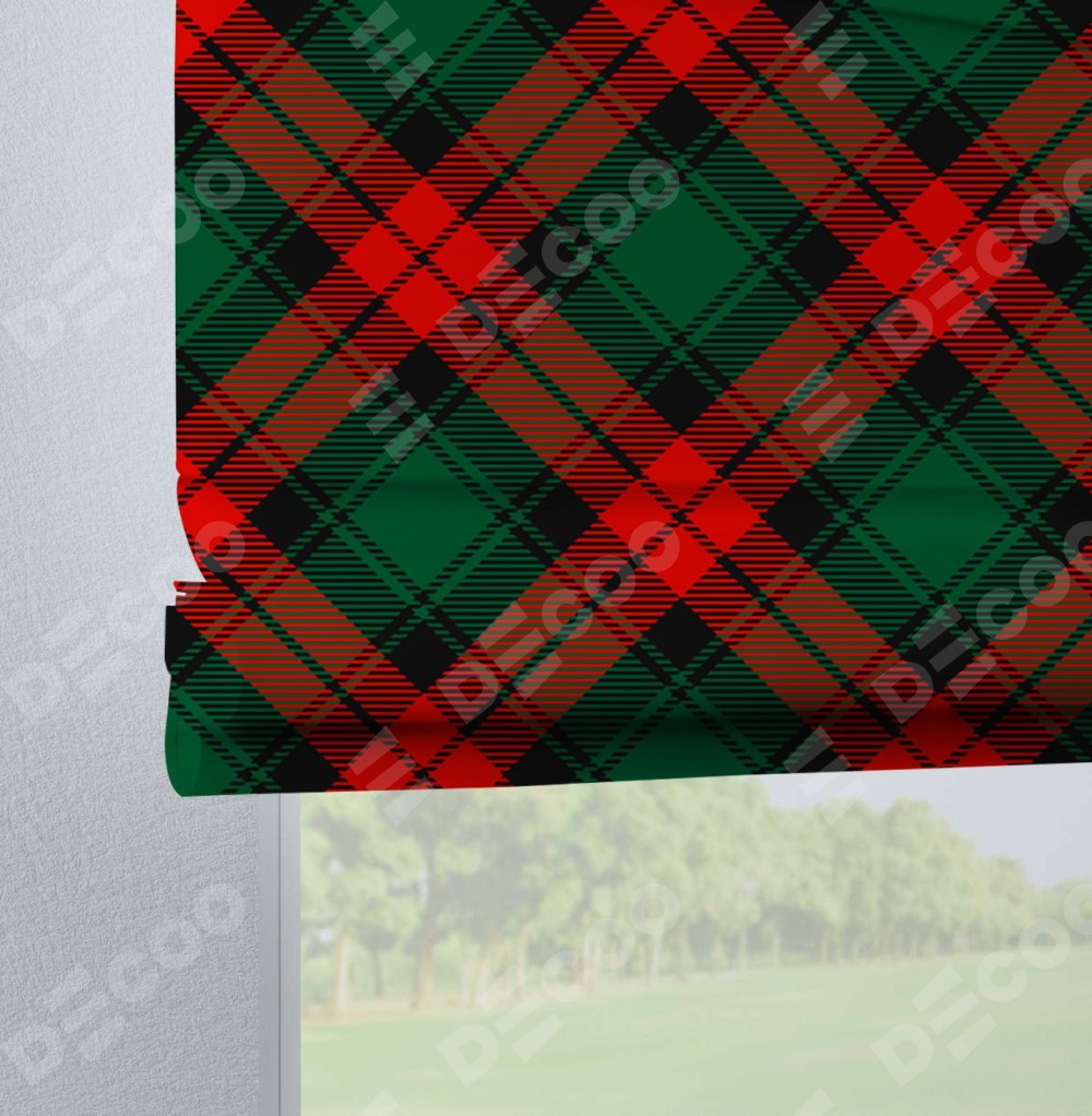 Римская штора на петлях «Красно-зелёная клетка»