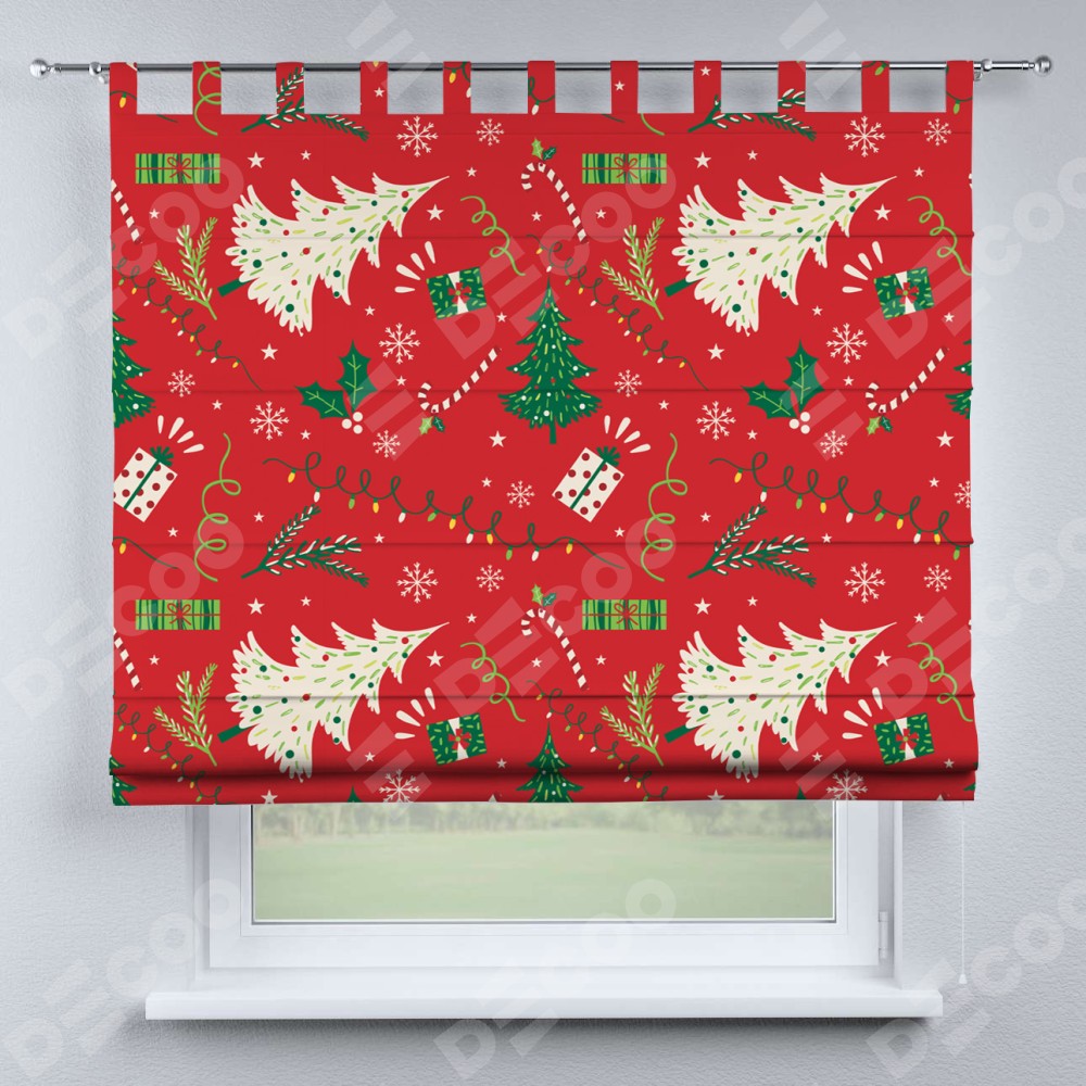 Римская штора производителя «Cortin», используется для проёма, пошита из ткани блэкаут с нанесением сублимационной печати «Новогодние подарки». Данная модель пошита на петлях, комплектуется на выбор круглым карнизом и подходит для монтажа на стену. Римская штора на петлях имеет простую систему регулировки высоты, отличительным преимуществом данной модели является простой способ монтажа. Достаточно повесить ее на трубу и штора готова!