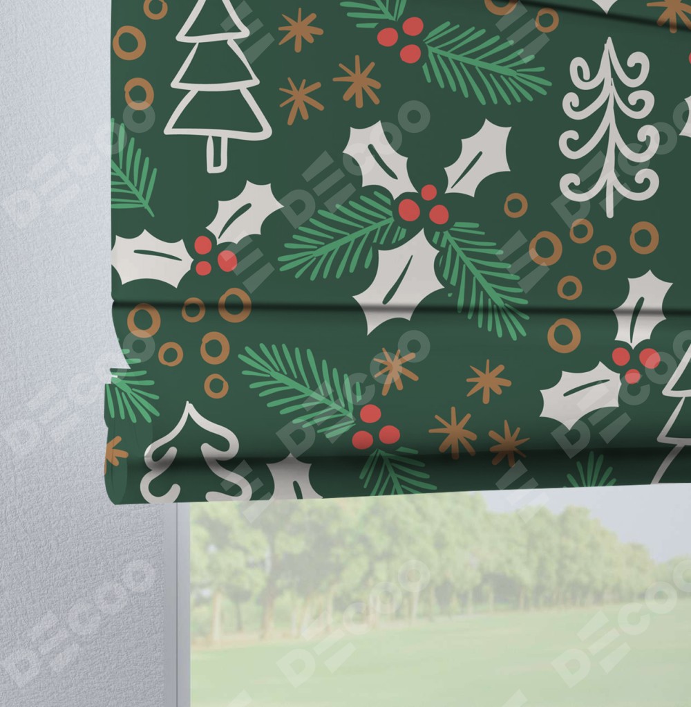 Римская штора производителя «Cortin», используется для проёма, пошита из ткани блэкаут с нанесением сублимационной печати «Рождественский узор». Данная модель пошита на петлях, комплектуется на выбор круглым карнизом и подходит для монтажа на стену. Римская штора на петлях имеет простую систему регулировки высоты, отличительным преимуществом данной модели является простой способ монтажа. Достаточно повесить ее на трубу и штора готова!