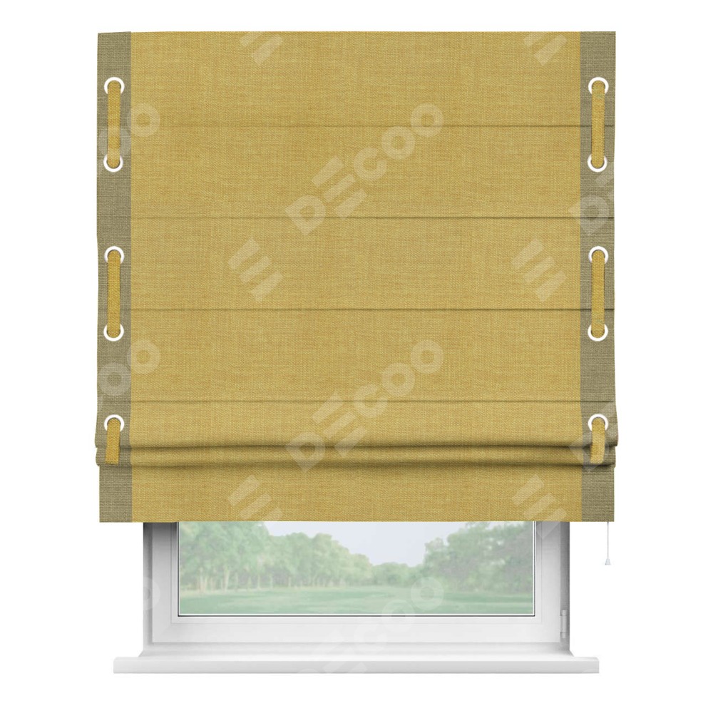 Римская штора «Кортин» с кантом Стрим Дуо (люверсы с пояском), для проема, ткань лён горчичный