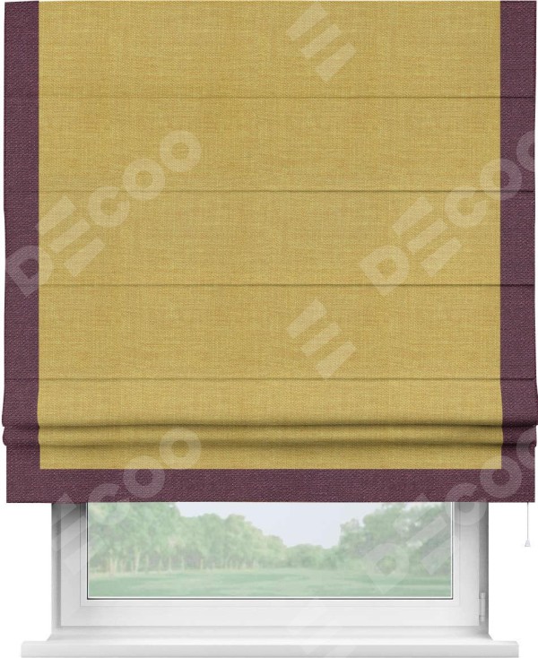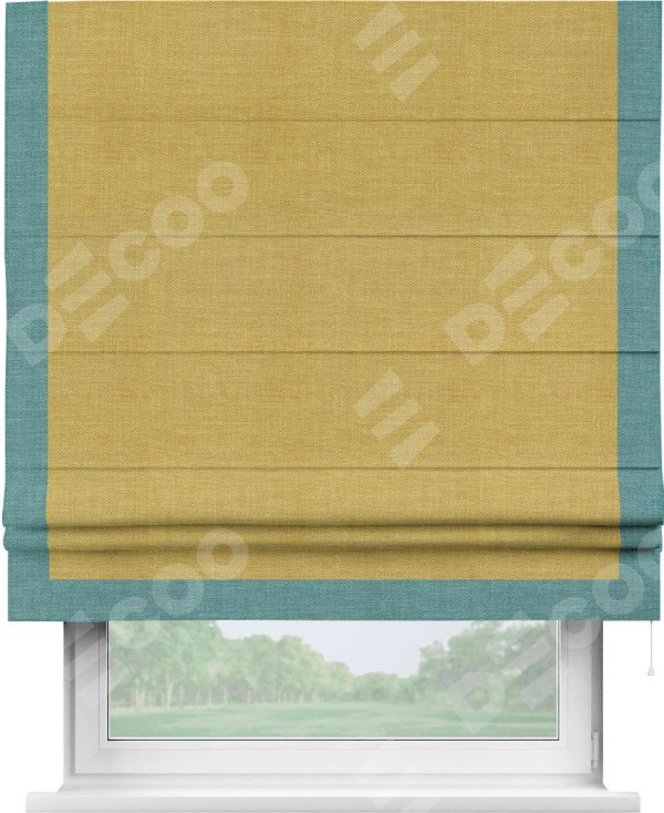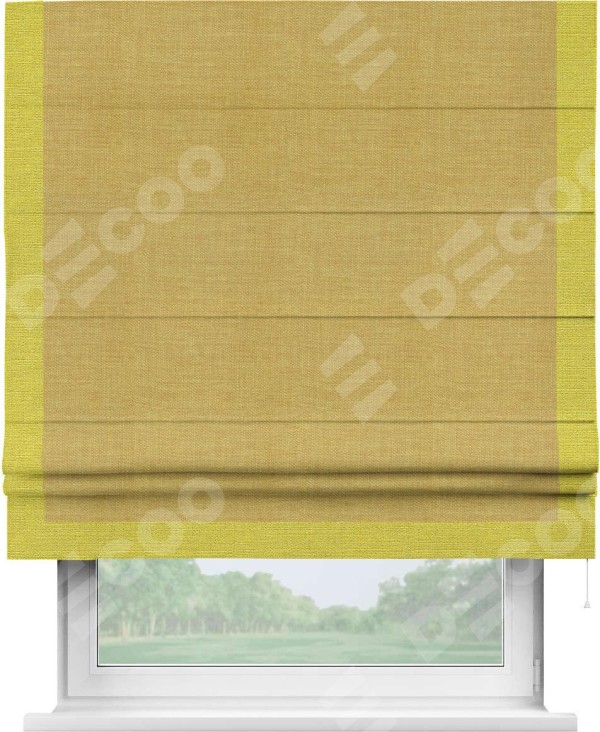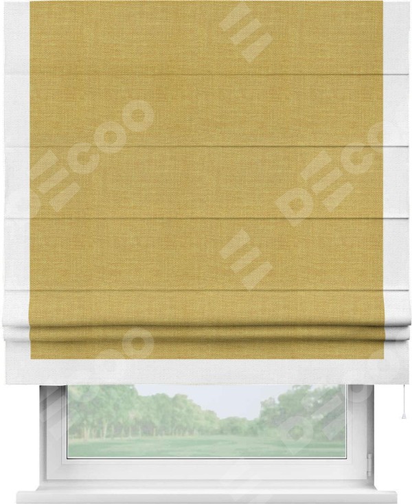 Римская штора «Кортин» с кантом Виктория, для проема, ткань лён горчичный