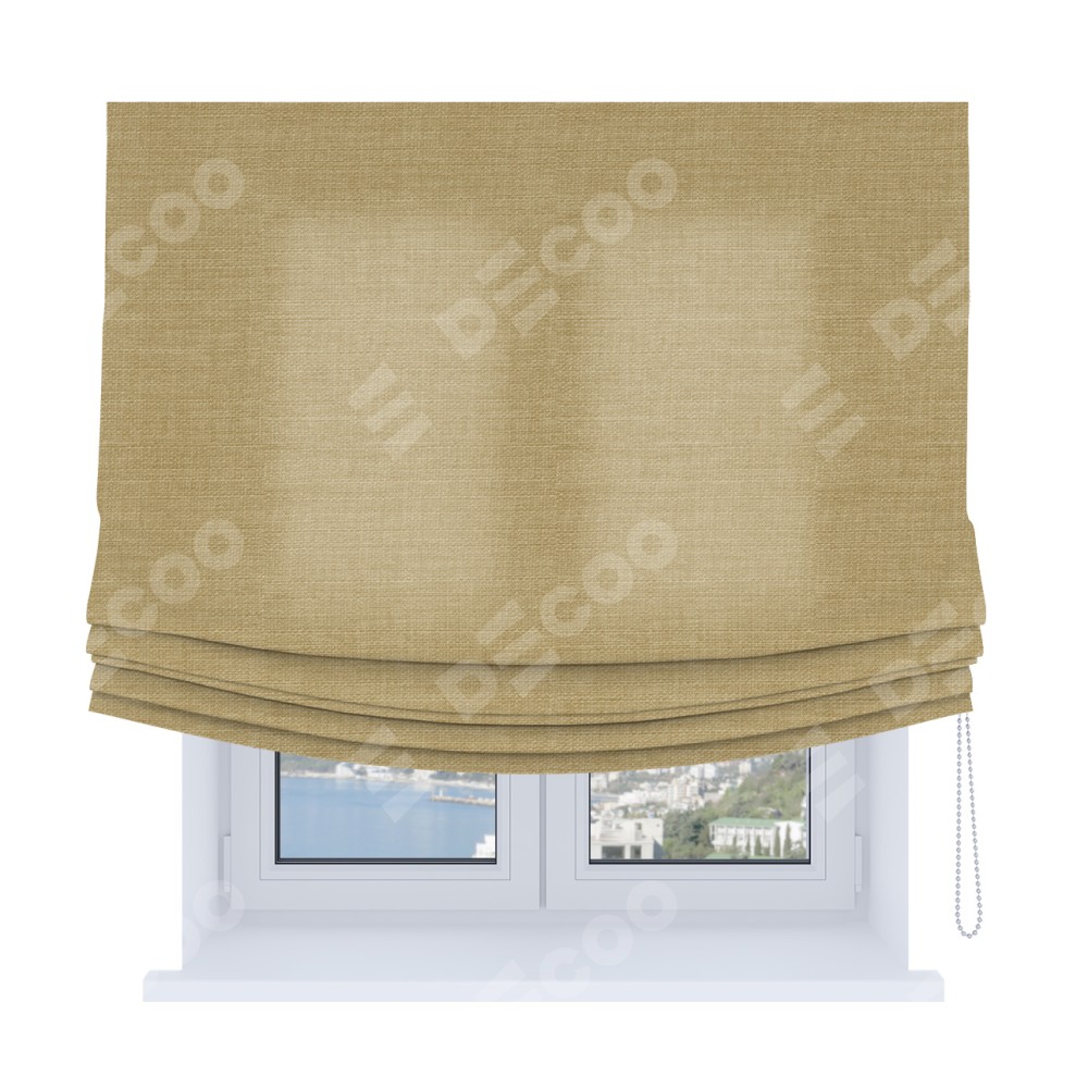 Римская штора Soft производителя «Cortin», используется для проёма, пошита из ткани лён бежевый, артикул ткани 7442. Имеет универсальный механизм и подходит для монтажа: на потолок, на стену и в нишу. В отличие от стандартных римских штор, римская штора Soft не имеет горизонтальных вставок и нижнего отвеса. Это позволяет ткани произвольно драпироваться в свободные мягкие складки.