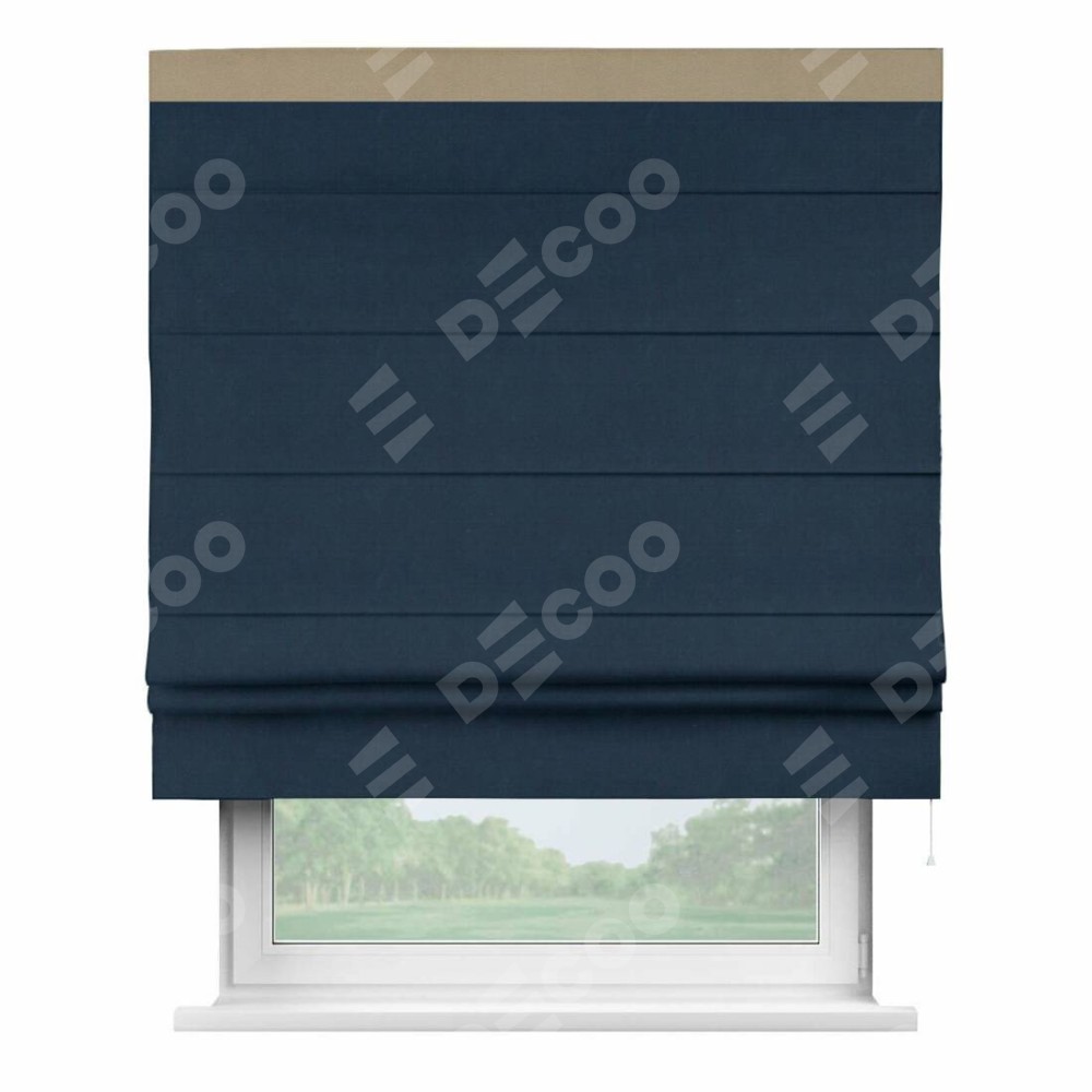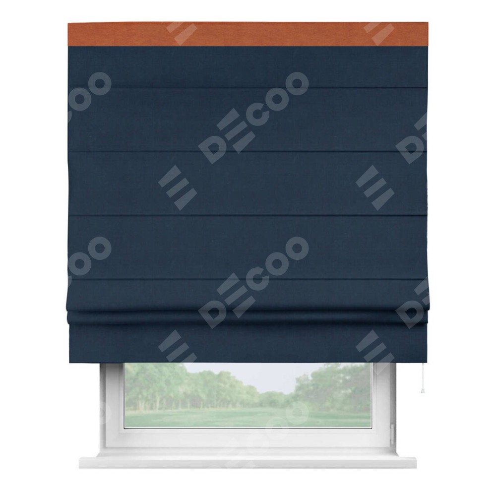 Римская штора «Кортин» с кантом Кинг, для проема, ткань вельвет темно-синий