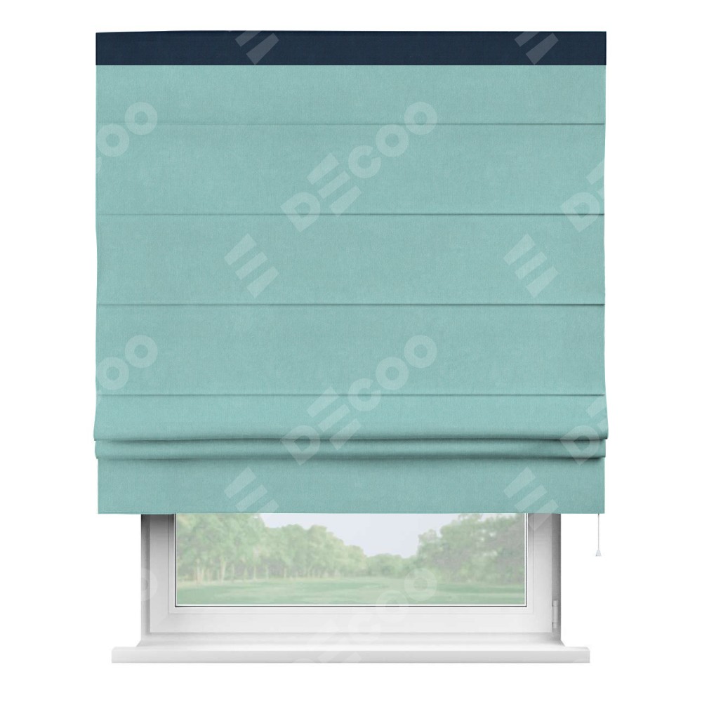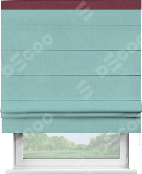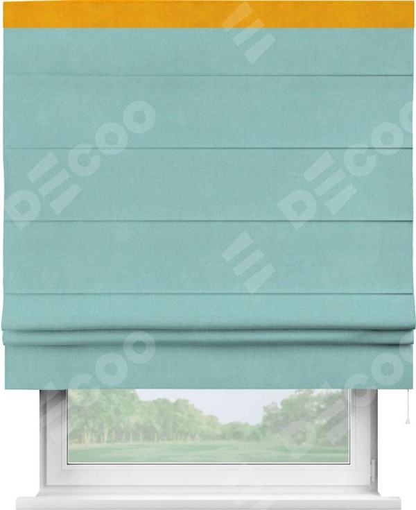 Римская штора производителя «Cortin», используется для проёма, пошита из ткани вельвет тиффани, артикул ткани 17765. Отделка шторы кантом «Кинг», ткань для канта используется из вельвета разной расцветки на выбор. Имеет универсальный механизм и подходит для монтажа: на потолок, на стену и в нишу.